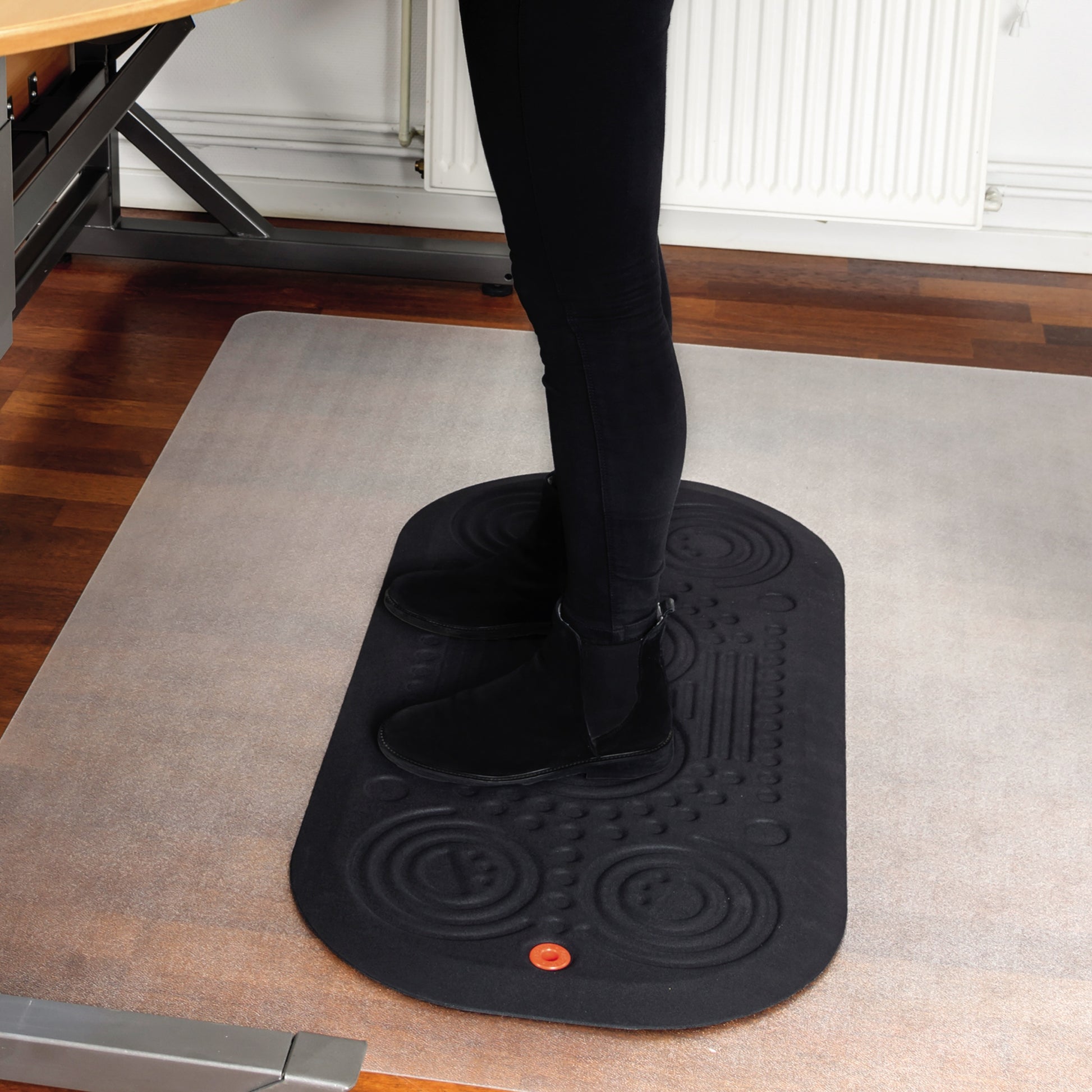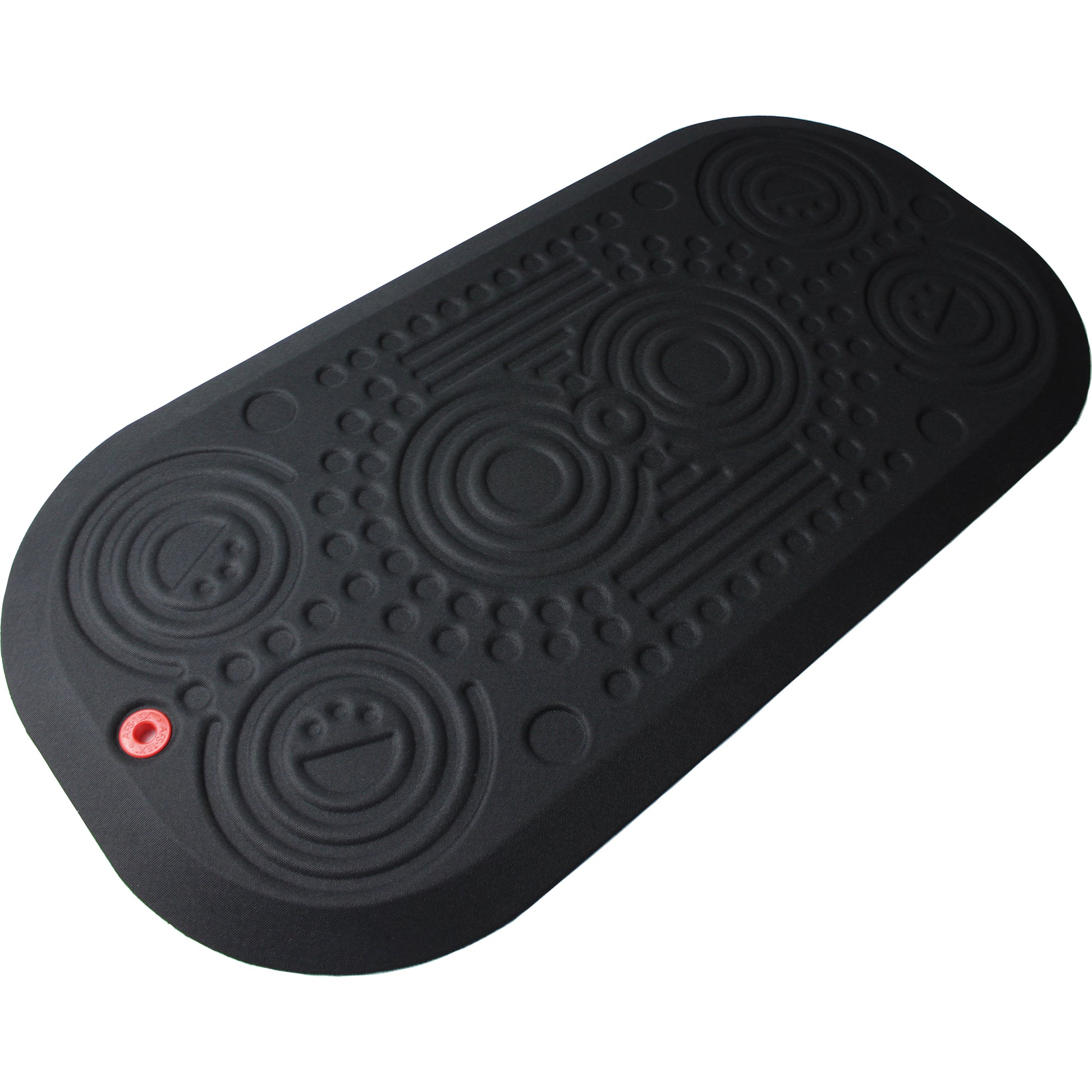 Mit unterschiedlichen Fußmassagezonen, die zu regelmäßiger Bewegung anregen und dabei helfen, Ermüdung entgegenzuwirken. Extra groß, daher ideal an Verkaufs- oder Rezeptionstresen. Höhere (20 mm) Konstruktion. Anti-rutsch Rücken für guten Halt, integrierter anti-mikrobieller Inhaltsstoff, der sich nicht abwäscht oder abträgt. Abgeschrägte Kanten verringern das Stolperrisiko. Frei von Phthalaten, zu 100% recycelbar.