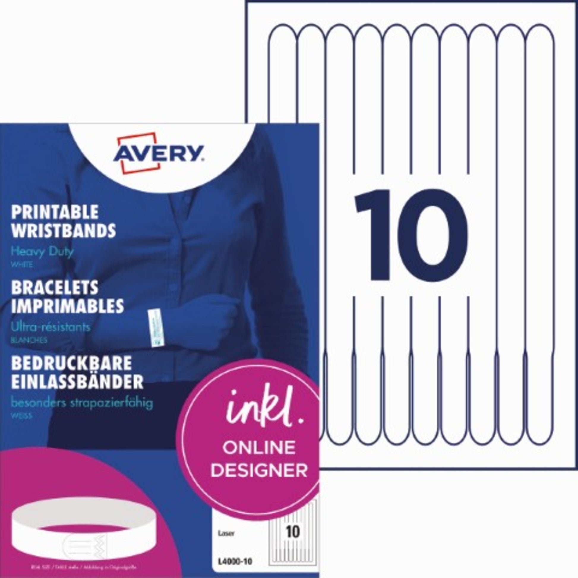 Die Bänder erleichtern Ihnen die Organisation von Veranstaltungen, Meetings, Seminaren und Konferenzen. Durch das besonders weiche Material und den glatten Rändern zeichnen sich die Einlassbänder durch einen hohen Tragekomfort aus. Sie sind zudem schmutzbeständig für einen robusten Gebrauch. Gestalten und bedrucken Sie Ihre Einlassbänder schnell und einfach - mit den kostenlosen Avery Zweckform Etiketten Vorlagen und Software-Lösungen unter www.avery-zweckform.eu/print.