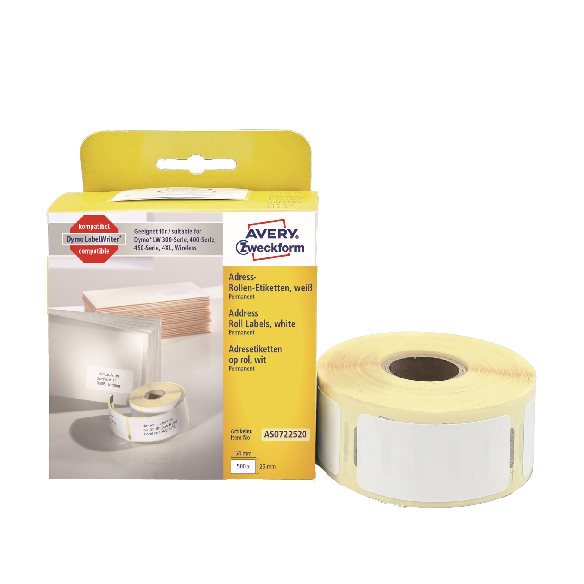 Die Rollenetiketten zeichnen sich durch eine überdurchschnittlich gute Klebkraft aus (gemessen nach FTM2 und FTM9 auf allen gängigen Oberflächen). Sie sind frei von Bisphenol A (BPA). Wir garantieren vollste Zufriedenheit für die Avery Zweckform Rollenetiketten, oder Sie erhalten Ihr Geld zu 100 % zurück (Teilnahmebedingungen unter www.avery-zweckform.de). Bedrucken Sie je nach Bedarf einzelne oder auch mehrere Adressaufkleber schnell und einfach.