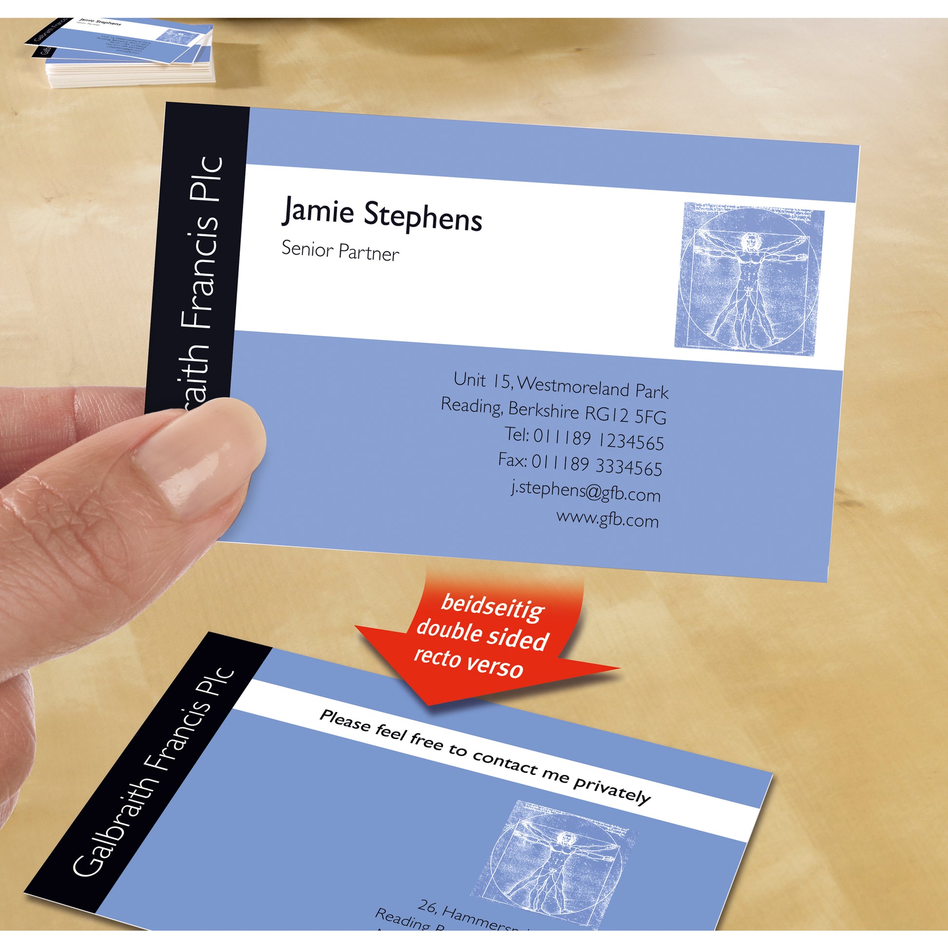Ein Ergebnis wie aus der Druckerei durch absolut glatte Kanten und hohe Grammatur. Spezielle satinierte Colour Laser Oberflächenstruktur für einen sehr guten Ausdruck mit scharfen Konturen und brillanten Farben. Schnelle und einfache Gestaltung und Druck durch passende Software-Unterstützung. Beidseitige Bedruckbarkeit bietet Gelegenheit zusätzliche Informationen zu kommunizieren. Hohe Flexibilität durch Möglichkeiten des Ausdrucks in kleinen Stückzahlen. Leichtes und sauberes Heraustrennen der einzelnen Karten dank der patentierten Quick&Clean Technologie. Die sofort verfügbaren Karten sind eine sehr gute Lösung auch für Notfälle. Die Software zur Bearbeitung gibt es zum kostenlosen Download im Internet unter www.avery-zweckform.de oder direkt bei Avery Zweckform.
