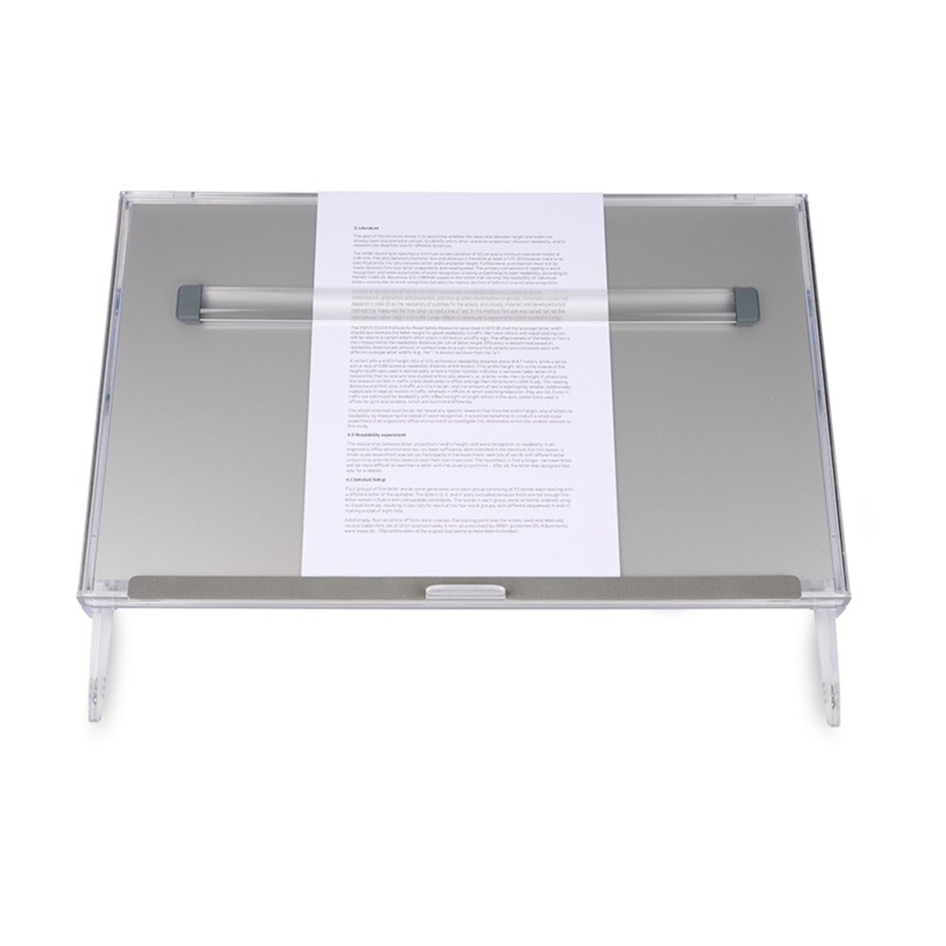 ComfortRead bietet Vorteile für eine ergonomische Arbeitshaltung und erhöhte Produktivität beim Lesen von Dokumenten. Mit optimierter Vergrößerung und klarer Textanzeige verbessert es die Lesbarkeit, fördert die Konzentration und reduziert Ermüdung. Die Vergrößerung verhindert Verzerrungen, während das Design eine ergonomische Körperhaltung unterstützt und die Belastung von Nacken und Augen deutlich reduziert. Durch effizienteres Arbeiten und weniger Suchen nach der richtigen Zeile verbessert der ComfortRead Ihre Arbeitsleistung. Darüber hinaus ist das Produkt leicht, langlebig und einfach zu bedienen und reflektiert nur wenig bis gar nicht. Daher passt der ComfortRead nahtlos zu bestehenden ergonomischen Lösungen wie dem FlexDesk und anderen Konzepthaltern. Bietet Platz zur Ablage einer Tastatur, Platz unter Vorderkante: 55 mm.