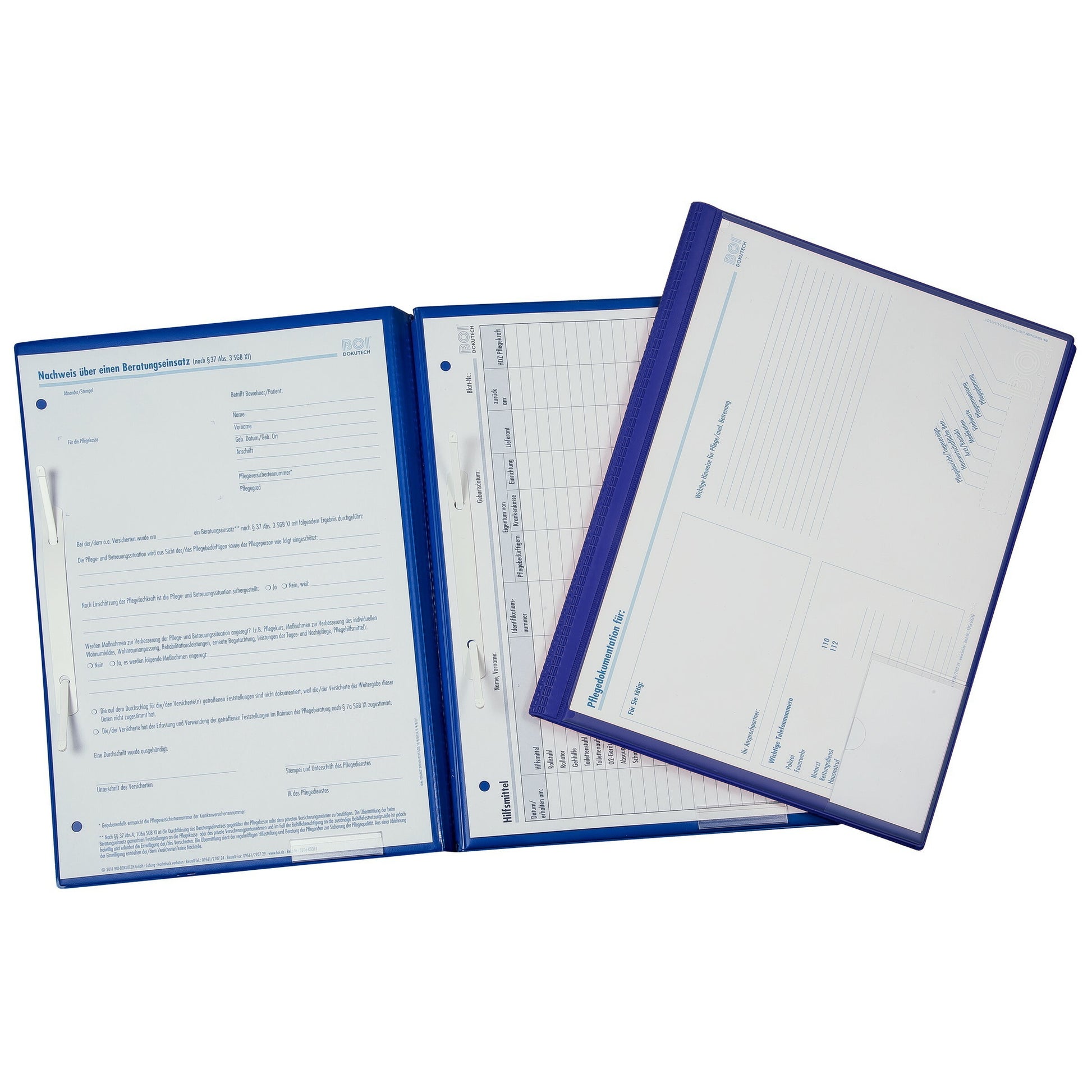 Diese stabile 3-Deckel-Mappe bietet größtmögliche Flexibilität: Durch ihre 4 Abheftmöglichkeiten mit integrierten Heftzungen lassen sich eine Vielzahl an Dokumenten einfach und sicher ablegen. Die Heftmechaniken sind im Vorderdeckel sowie vorne und hinten auf dem Mitteldeckel vorhanden. Sie verfügen jeweils über eine Kunststofflasche zum Festhalten der Dokumentationsblätter. Die aufgeschweißte Klarsichttasche dient der Aufnahme eines Deckblattes und hat zusätzlich ein Fach für die Gesundheitskarte. Im Rückdeckel befindet sich innen eine Klemmleiste zur Aufnahme einer Signalbahn.