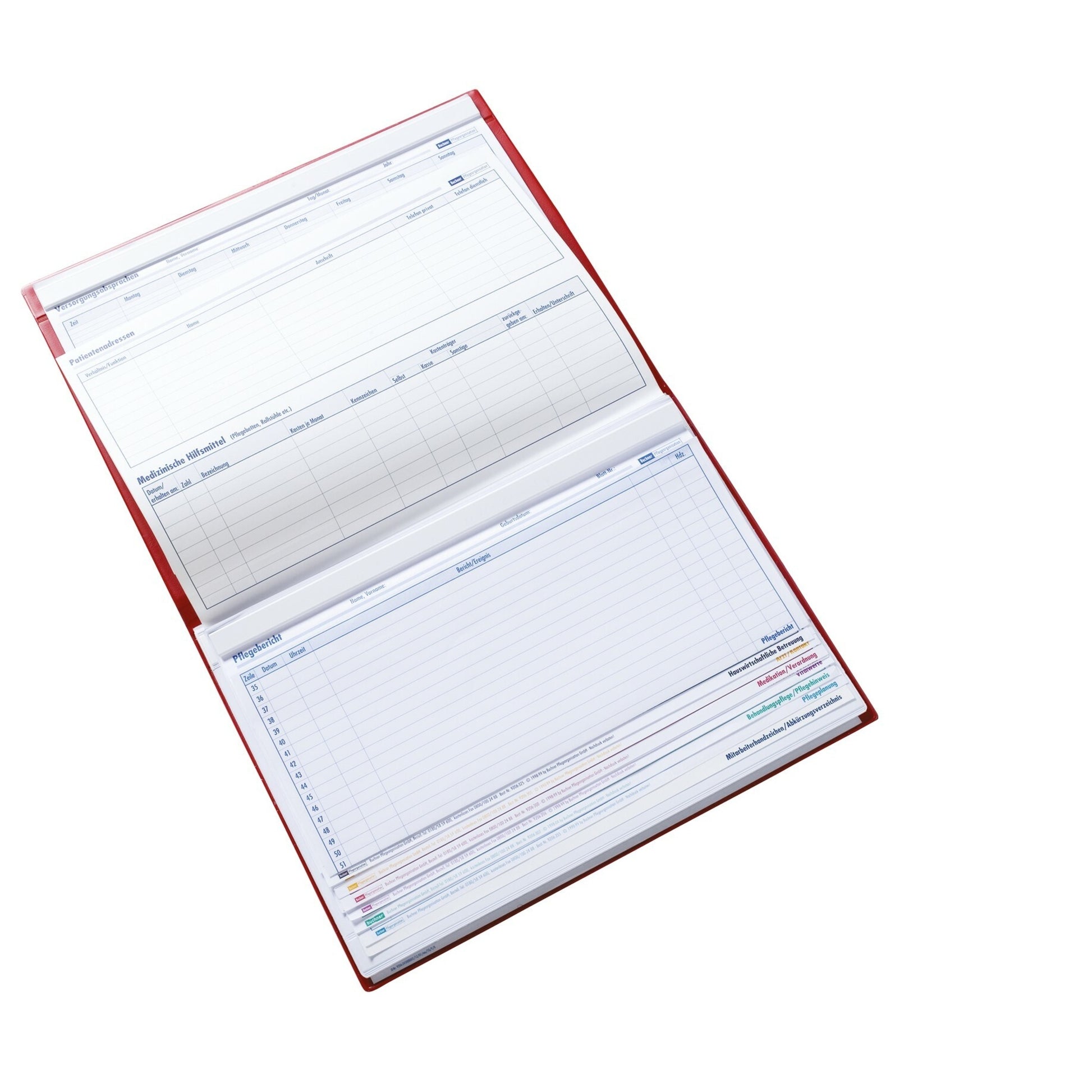Diese Mappe zeichnet sich durch Stabilität und ein repräsentatives Äußeres aus. Sie verfügt über Heftmechaniken, Klarsichttaschen und ein 10-farbiges Signalreitersystem. Im Inneren der Mappe ist ein Registerblatt eingeschweißt, sodass vier verschiedene Abheftmöglichkeiten bestehen. Die Klarsichttasche auf dem Rückendeckel dient zur Ablage von Verträgen oder Befunden. Dank einer innen liegenden Halterung ist stets ein Stift griffbereit.