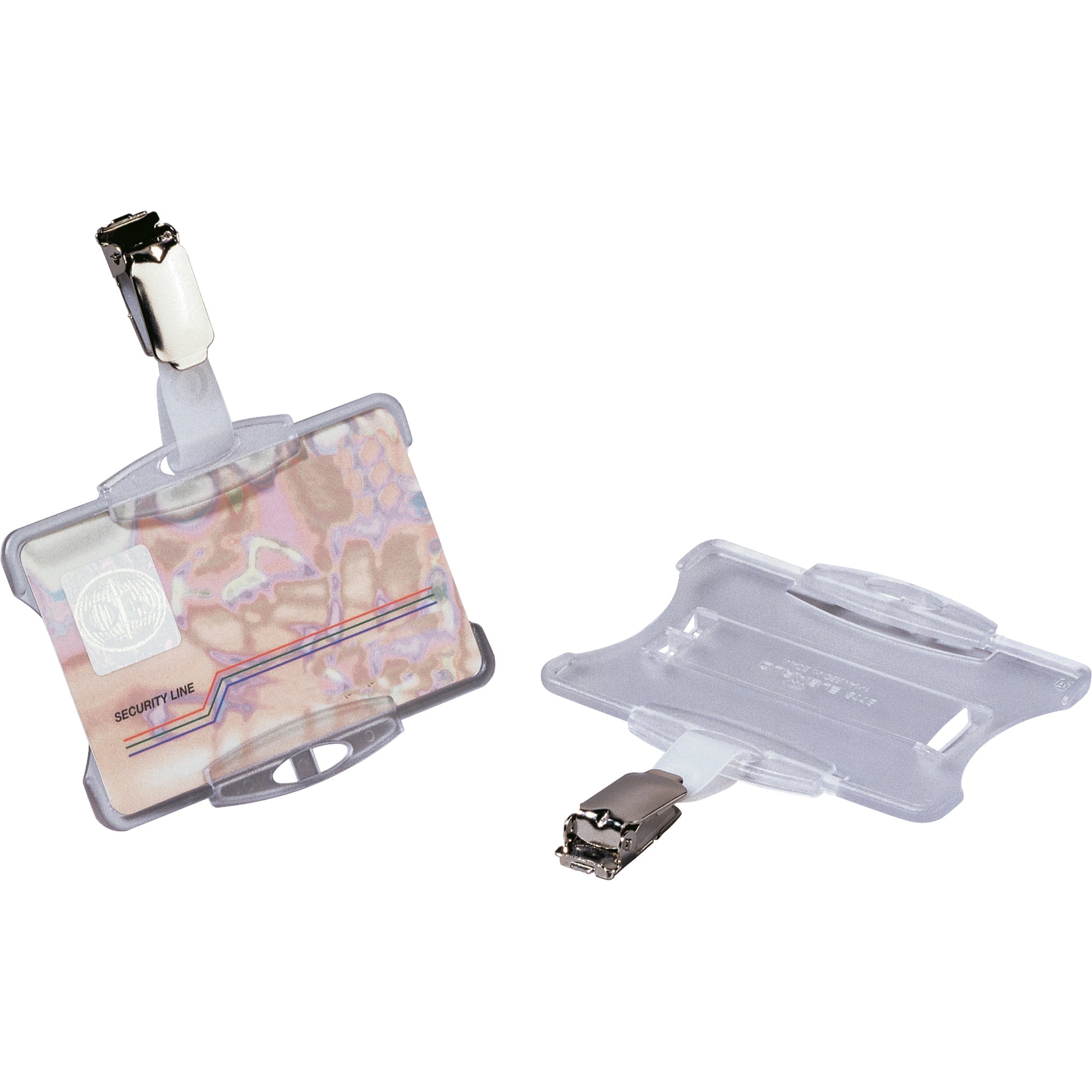 Hülle ist komplett geschlossen. Daumenstanzung ermöglicht einen schnellen Zugriff, für 2 Betriebsausweise, mit Aufrollmechanismus. Wahlweise im Hoch- oder Querformat nutzbar. Kristallklares Material für optimale Lesbarkeit und einfaches Scannen von Barcodes.