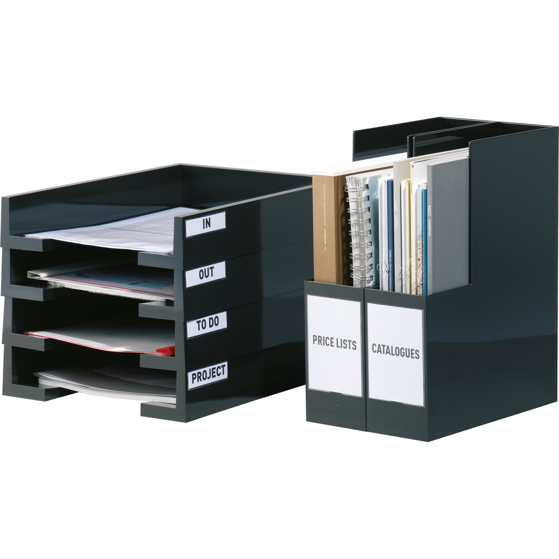 Zur Kennzeichnung von Ordnern, Mappen und Heftern und zur Präsentation von Visitenkarten. Mit EDV-beschriftbaren blanko Einsteckschildern, einfache und professionelle Beschriftung mit DURAPRINT®.