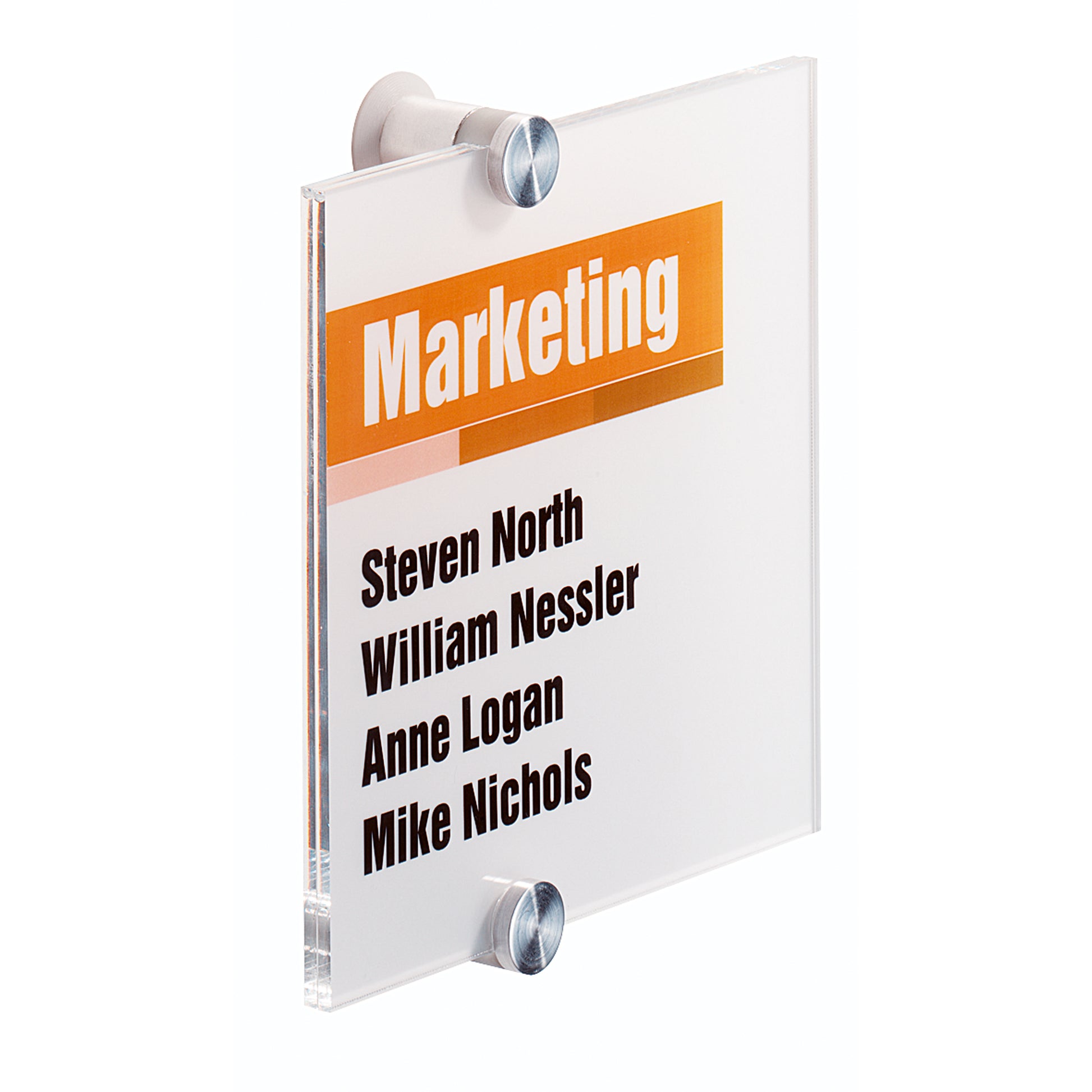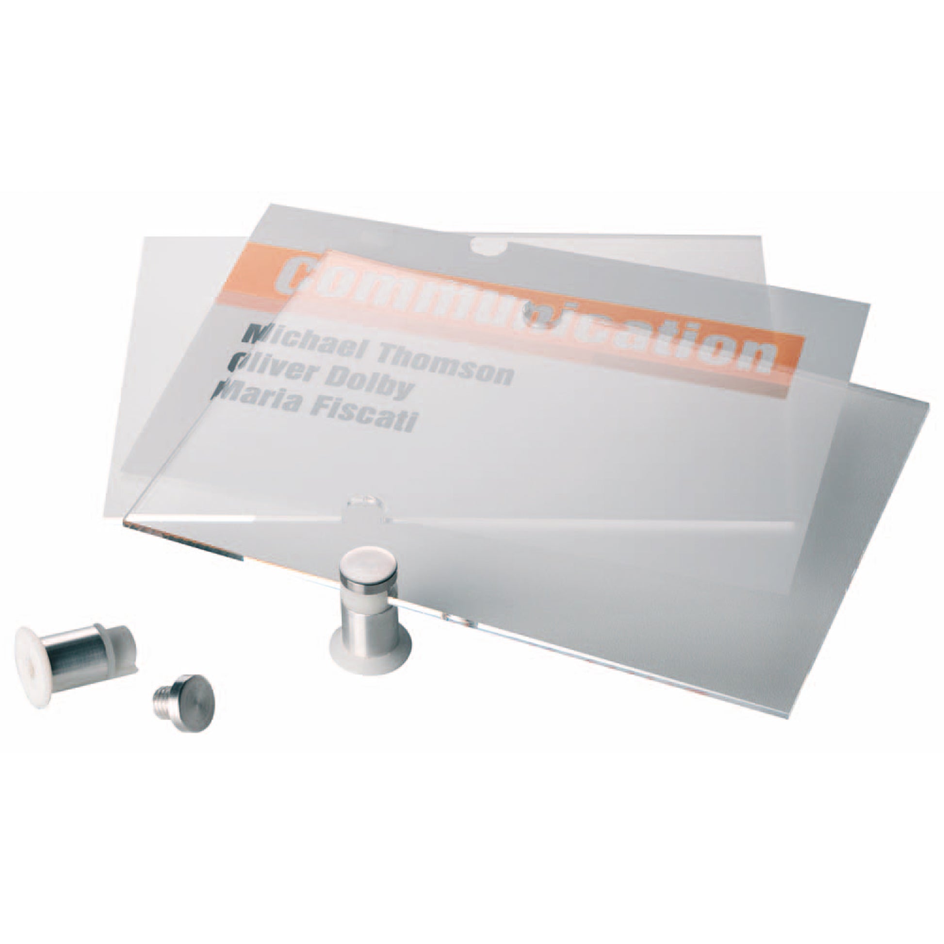Geeignet für den Einsatz z.B. in Büros, Konferenzräumen, Lobbys und vielen anderen repräsentativen Räumlichkeiten. Sie werden zwischen die beiden Acrylplatten gelegt und durch zwei hochwertige Schraubverbindungen an der Wand fixiert. Befestigung mit beiliegendem Montageset.