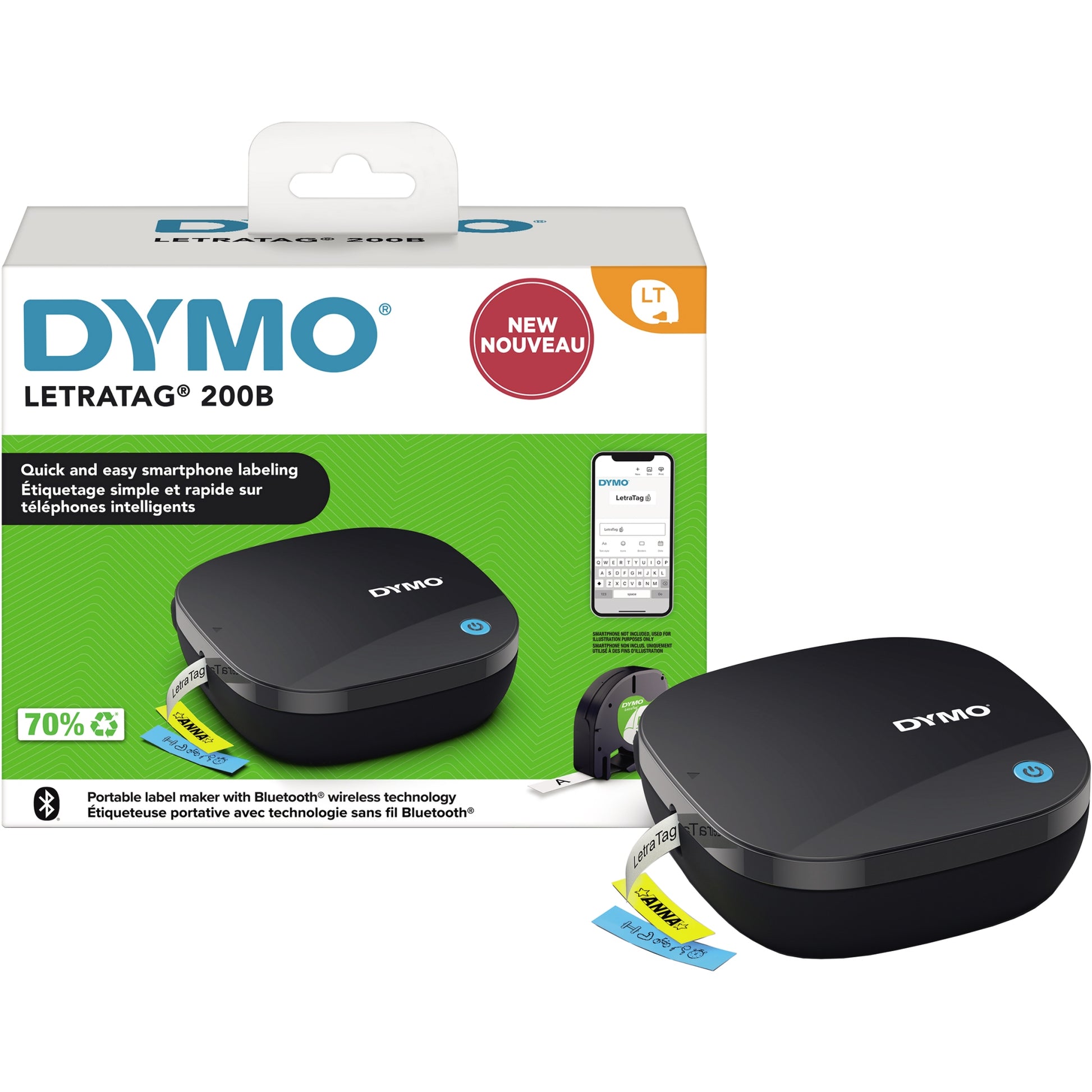 Mit dem tragbaren DYMO® LetraTag® 200B Bluetooth können Sie eine Vielzahl von Etikettenarten und -farben direkt von Ihrem Smartphone oder Tablet aus drucken. Mit der leicht und intuitiv bedienbaren LetraTag® Connect Mobile App lassen sich Haushalte und Heimbüros leicht und perfekt organisieren. Der LetraTag® 200B passt bequem in Ihre Tasche und ist dank der automatischen Bluetooth-Verbindung in Sekundenschnelle einsatzbereit. Der LetraTag® 200B funktioniert mit Original LetraTag®-Schriftband-Kassetten. Die externe Kassette besteht zu 100 % aus recycelten Materialien.