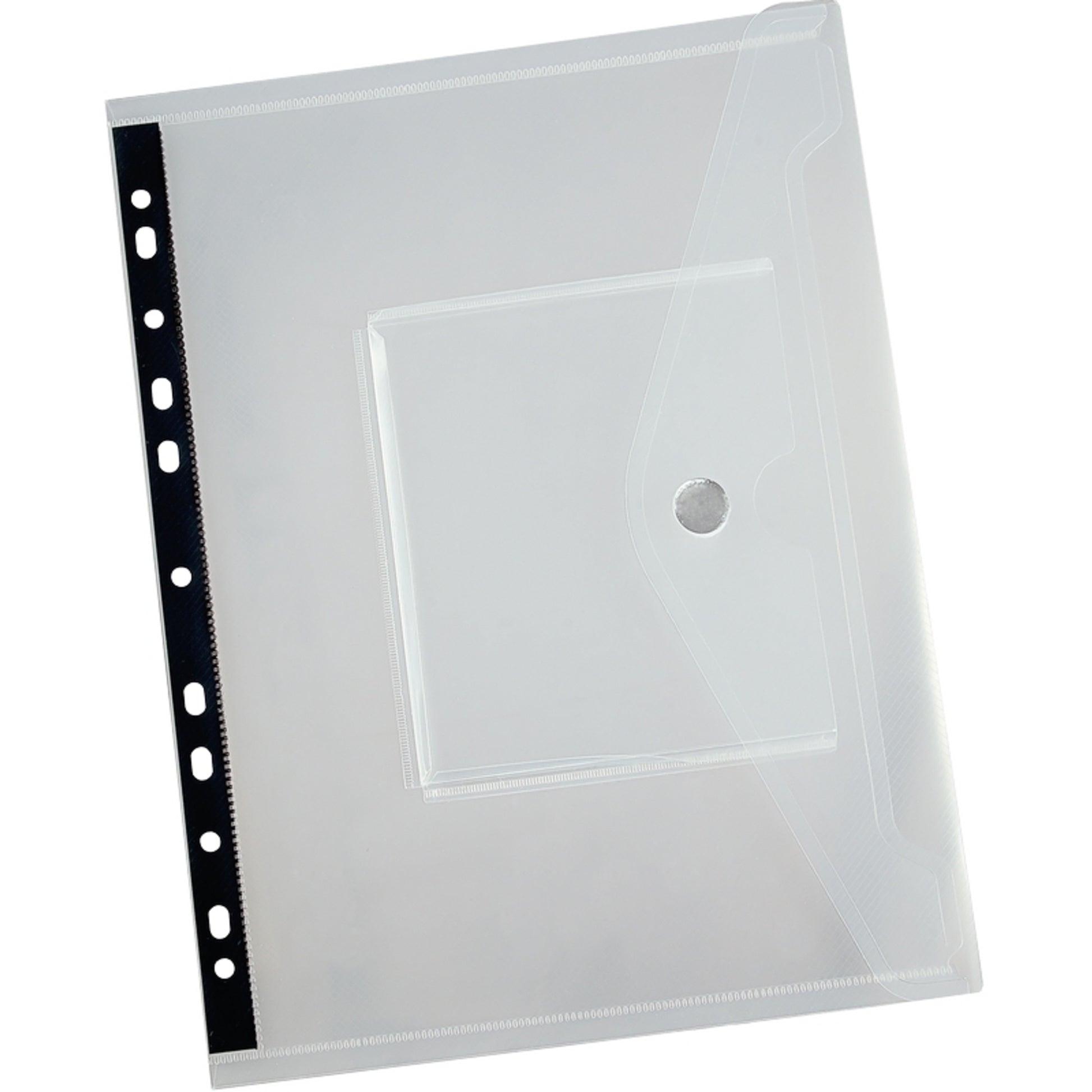 Diese Dokumentenhülle besitzt eine aufgeschweißte Tasche zur Aufbewahrung von CD`s und DVD`s oder auch USB-Sticks. Damit sind die Datenträger immer bei den Dokumenten zu finden. Umgekehrt kann die große Tasche auch zur Aufbewahrung der Dokumentation der CD/DVD genutzt werden, z.B. des Handbuchs einer Software oder des Kataloges einer Bilder-CD/DVD. Der Klettverschluss sichert die Daten und Disks gegen Verlust, der Abheftstreifen ermöglicht die Verwahrung in handelsüblichen Ringbüchern und Ordnern.