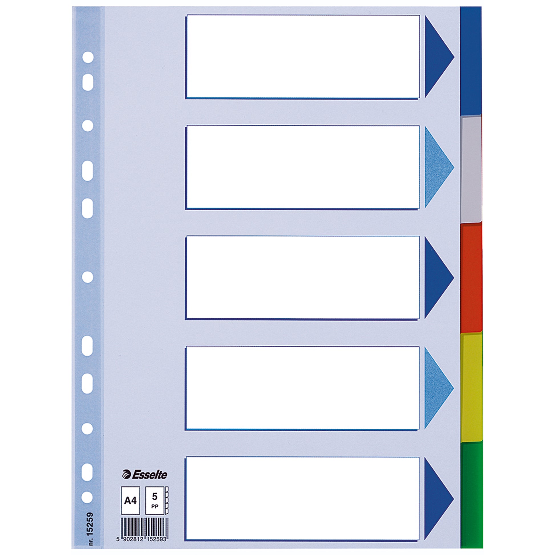 Esselte Register blanko DIN A4 5teilig PP h.bl/sort