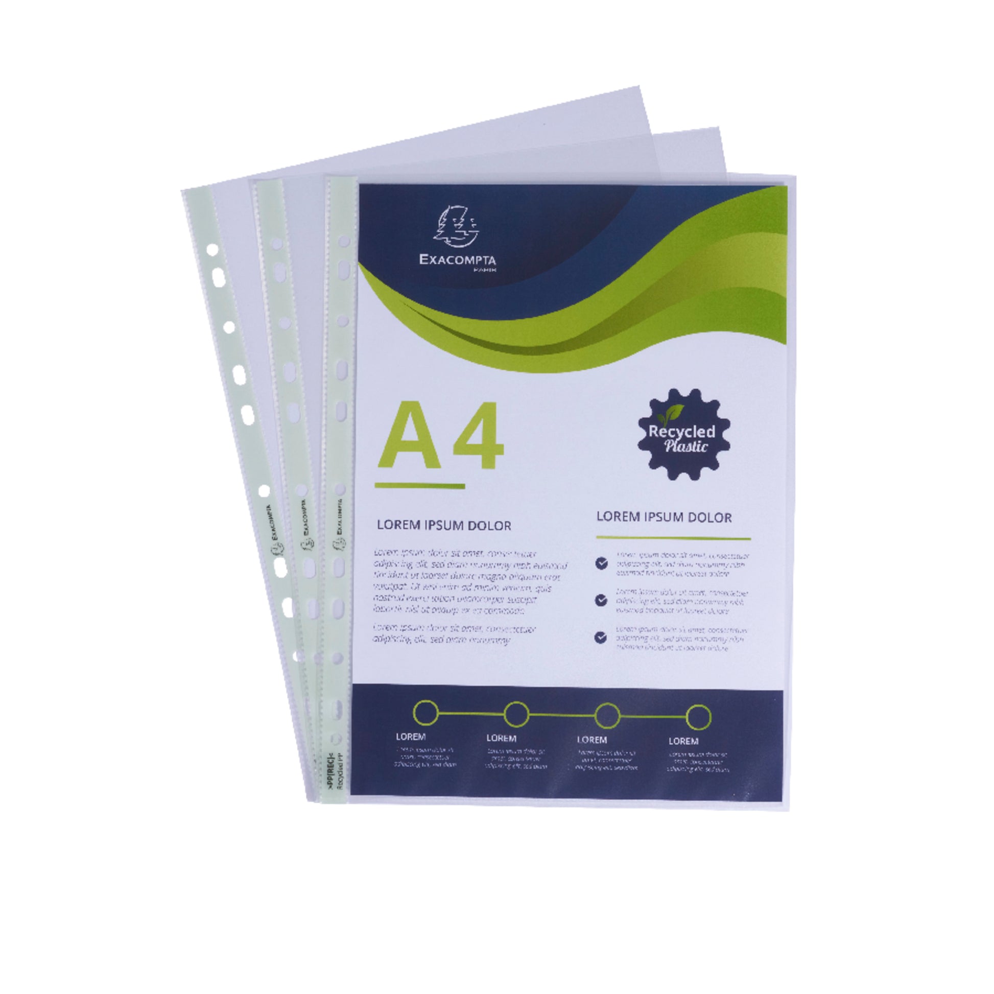 Die Hüllen werden vollständig aus recyceltem Material hergestellt, das aus Post-Consumer-Abfällen stammt, die gesammelt, sortiert und wiederverwendet wurden. Recyceltes, leicht grünes Verstärkungsband, um die Umweltfreundlichkeit des Produkts zu unterstreichen, während es für den Verbraucher in den üblichen Farbtönen bleibt.