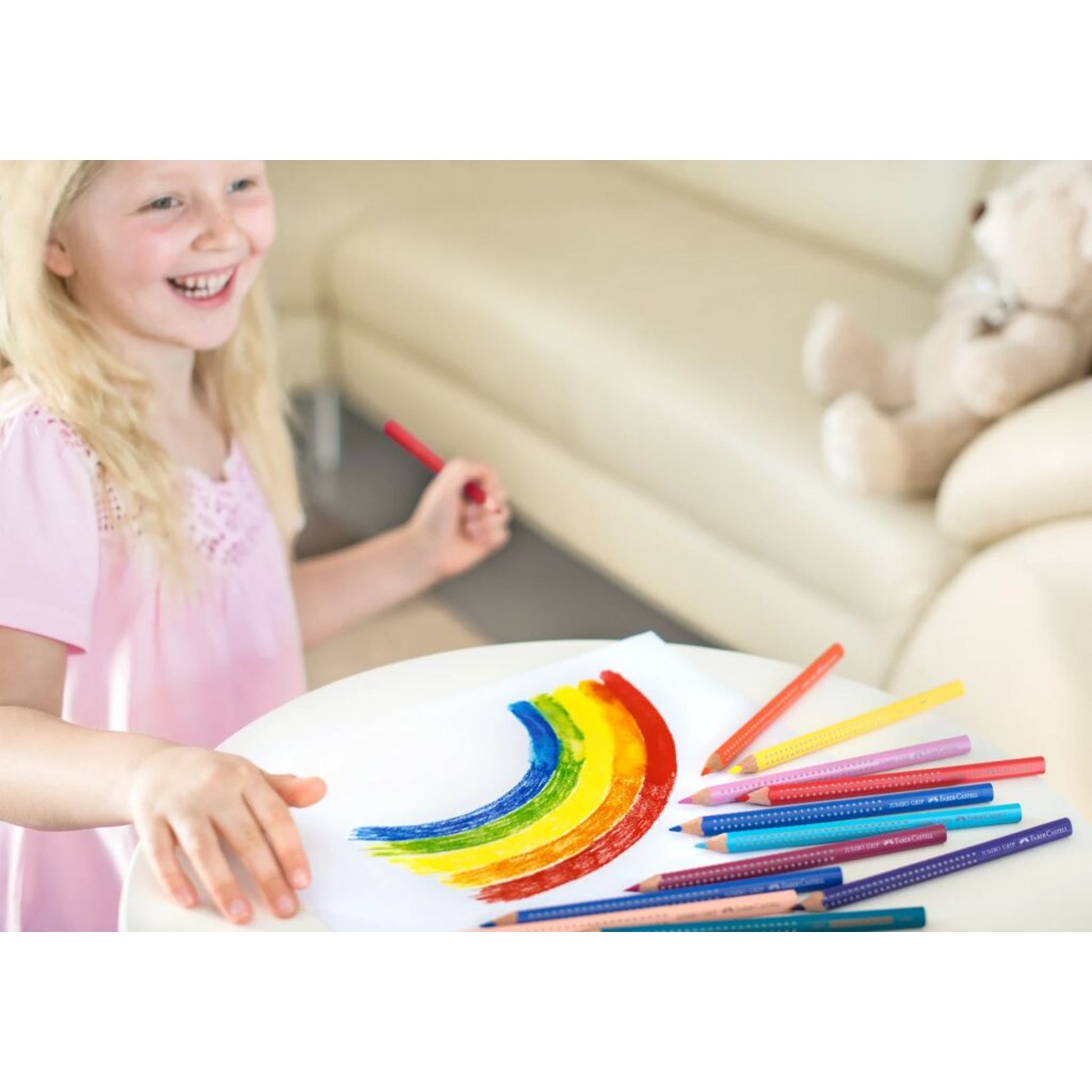 Die Buntstifte mit dem dicken dreieckigen Schaft sind optimal an die Ergonomie der Kinderhand angepasst. Die patentierte Soft-Grip-Zone sorgt für ermüdungsfreies und lockeres Malen. Besonders schöne Ergebnisse entstehen durch die Wasservermalbarkeit der Pigmente: einfach Farbe auftragen, mit feuchtem Pinsel darüber malen und tolle Aquarelleffekte erzielen.