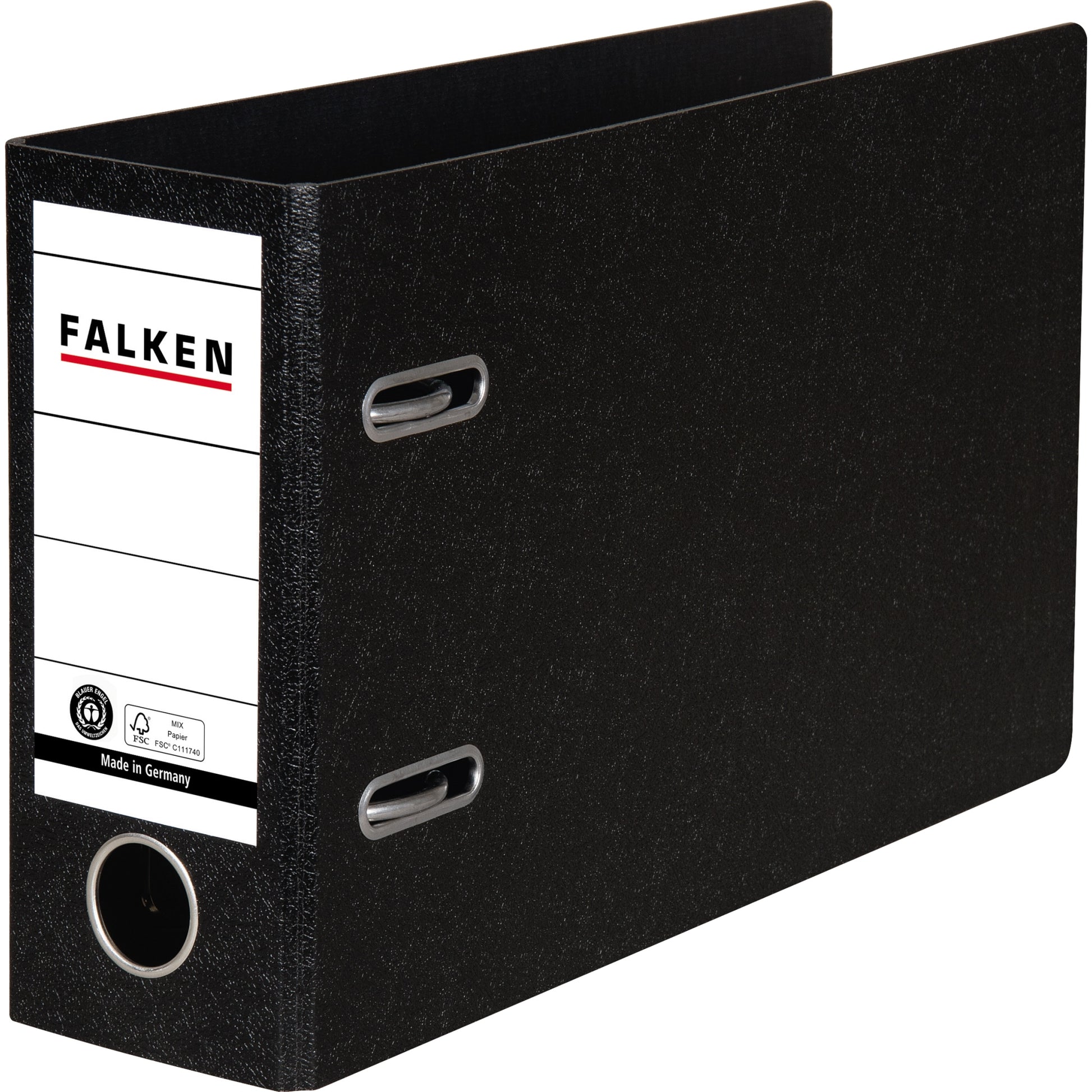 Falken Ordner 80mm DIN A5 quer Rückenschild: geklebt mit Schlitzen Werkstoff: Hartpappe Farbe: schwarz