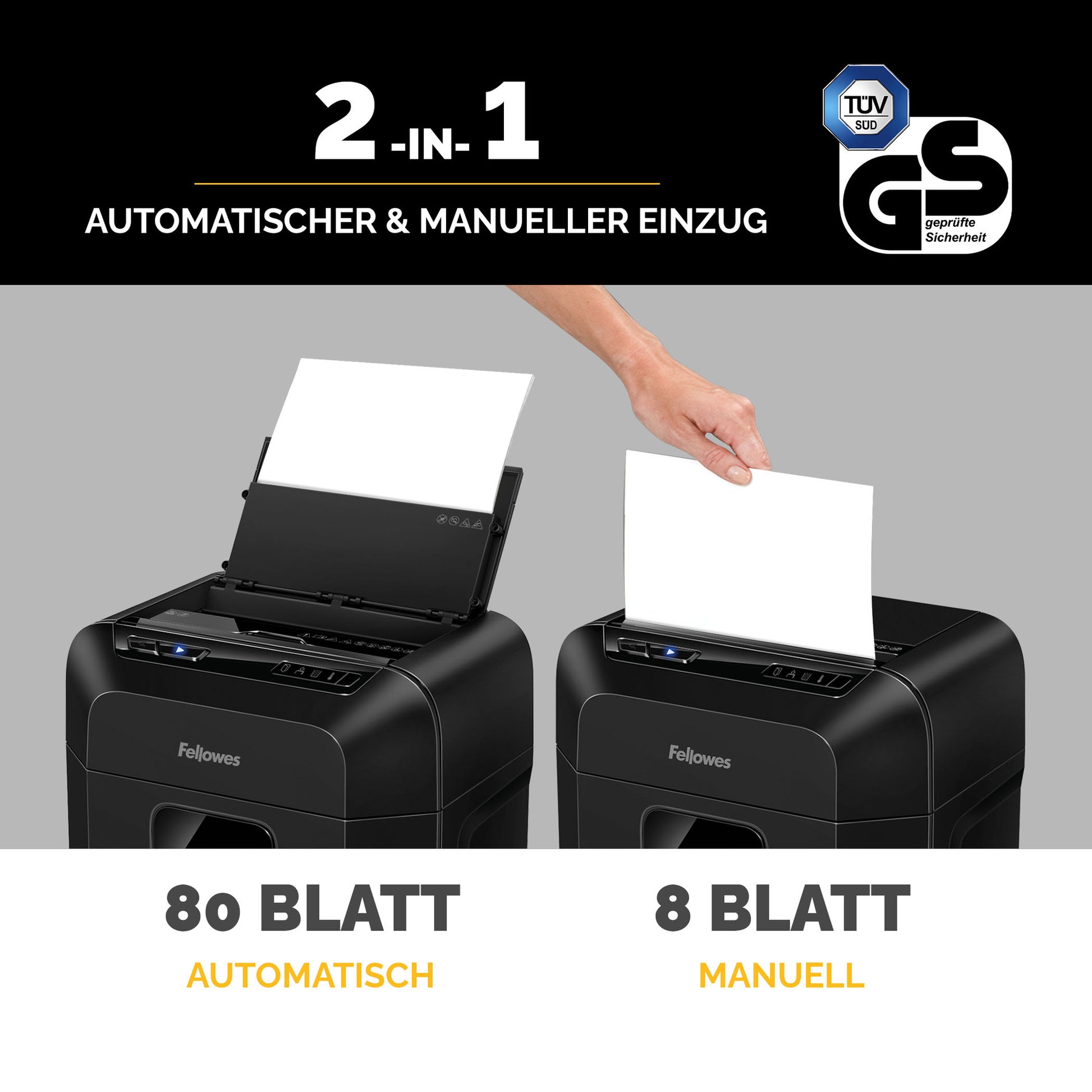 | Schneidleistung (70 g/m²) | 8 Bl. manuell, 80 Bl. automatisch |