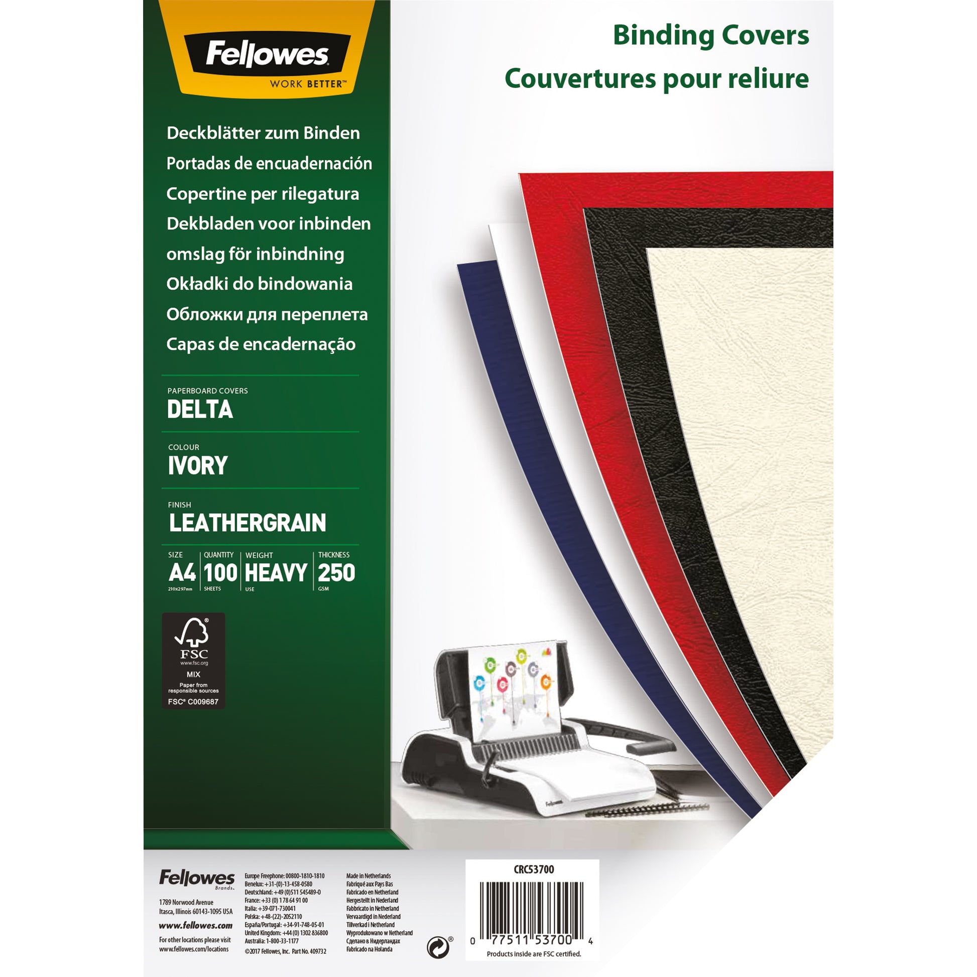 Fellowes® Deckblätter aus hochwertigem Karton verleihen gebundenen Dokumenten ein professionelles Finish. Geeignet für alle Plastik- und Drahtbindungen. Fellowes® Kartondeckblätter sind 100% recycelbar.