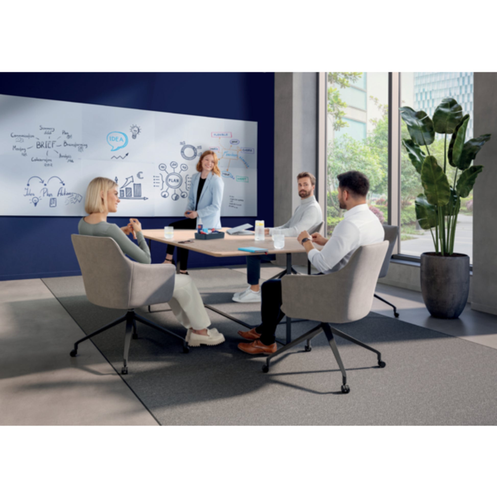 Das extra flache Whiteboard ist rahmenlos, dadurch modular und beliebig zu erweitern. Die Tafeln können wahlweise im Hoch- oder Querformat, neben- oder untereinander montiert werden. Durch das zum Patent angemeldete Befestigungssystem können die Whiteboards einwandfrei zusammengefügt werden, so dass keine Kanten die endlosen und durchgängigen Tafelflächen stören. Außerdem UV-gehärtet für eine hochwertige Oberfläche, die sich mühelos reinigen lässt.