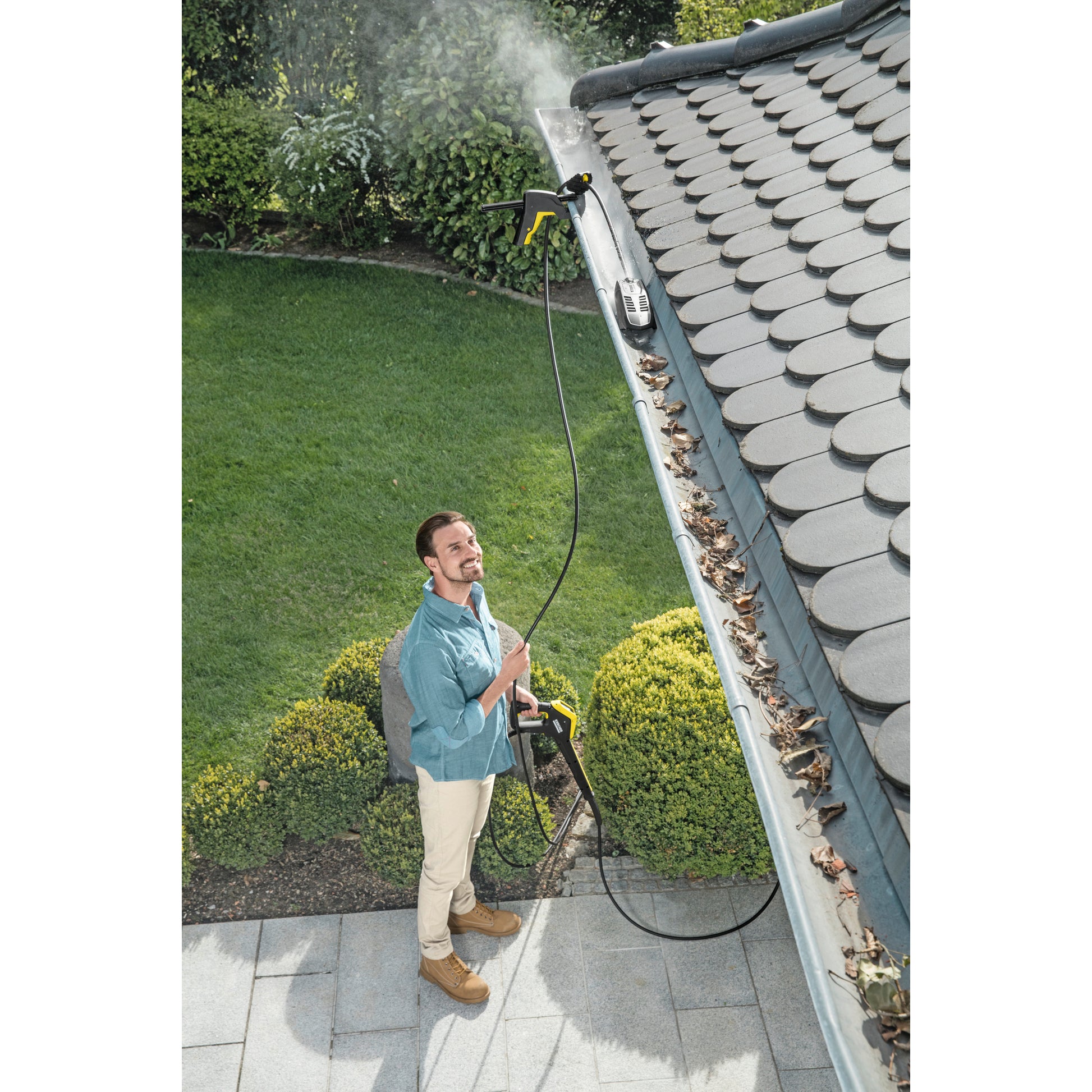 Die clevere 2-in-1-Lösung zur Reinigung von Dachrinnen und verstopften Rohren bzw. Abflüssen! Das innovative Dachrinnen- und Rohrreinigungsset von Kärcher arbeitet von ganz alleine - mit Hochdruck. Es bewegt sich auf einem Schlitten selbstständig durch die Dachrinne, ohne dass der Anwender permanent auf der Leiter danebenstehen muss. Das Dachrinnen- und Rohrreinigungsset ist mit zwei verschiedenen Düsen ausgestattet: einer Rohrreinigungsdüse mit vier nach hinten gerichteten Hochdruckstrahlen und einer Dachrinnenreinigerdüse für die Montage des Schlauchs an den Schlitten. Ein schneller Wechsel zwischen den Anwendungen ist jederzeit problemlos möglich. Ein Schlauch-Knickschutz und Messinganschluss gewährleisten lange Haltbarkeit.