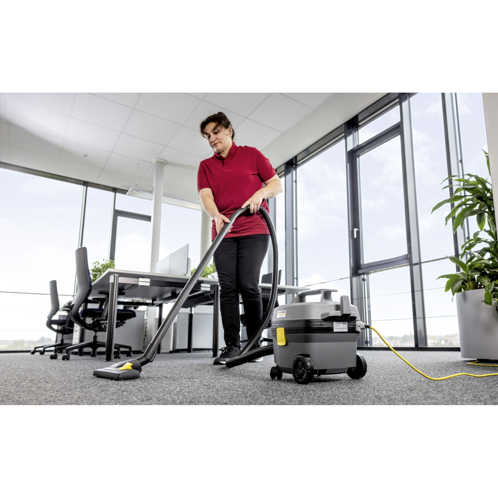 Der kompakte Trockensauger T 7/1 Classic Adv arbeitet ausgesprochen leise und ist durch seine ausgezeichnete Saugleistung bestens für Teppich- und Hartflächen geeignet. Dank seines geringen Gewichts und seines ergonomischen Tragegriffs kann er problemlos auch über Treppen und Absätze einhändig transportiert werden. Das mit 2 Bock- und 2 Lenkrollen ausgestattete Fahrwerk sorgt für gute Nachlaufeigenschaften, und der handlich geformte Krümmer ermöglicht ermüdungsfreies Arbeiten auch bei langen Einsätzen. Der Behälter wird durch eine umlaufende Stoßkante geschützt, wodurch Beschädigungen an Wänden, Möbeln und dem Behälter selbst vermieden werden. Das steckbare Netzkabel des T 7/1 Classic Adv kann vom Anwender bei Bedarf im Handumdrehen selbst ausgetauscht werden.