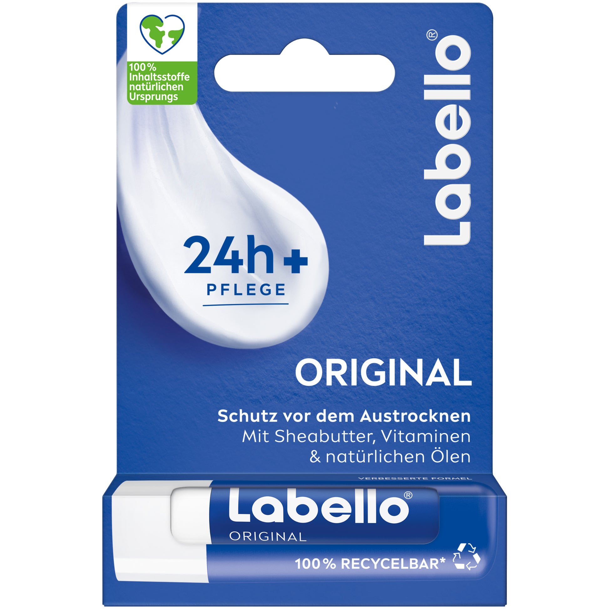 Mit dem Labello Original gehören trockene und spröde Lippen der Vergangenheit an - für rundum geschmeidige Lippenpflege. Erlebe die reichhaltige Pflege von Labello Original. Die hochwirksame Formel mit Sheabutter und natürlichen Ölen pflegt deine Lippen und schützt sie länger als 24 h vor dem Austrocknen. Der Lippenpflegestift verleiht deinen Lippen ein farbloses Finish und überzeugt durch seinen klassischen und dezenten Duft. Für natürlich aussehende und spürbar gepflegte Lippen - den ganzen Tag lang. Genieße den langanhaltenden Schutz und die intensive Feuchtigkeit, die deine Lippen weich und geschmeidig macht. Verwöhne deine Lippen mit der bewährten Pflege von Labello Original und erlebe ein Gefühl von Wohlbefinden, das den ganzen Tag anhält. Dank seiner handlichen Größe passt der Labello Original in jede Handtasche oder Hosentasche und ist so immer griffbereit. Ohne Paraffine. Inhaltsstoffe: Helianthus Annuus Hybrid Oil, Cera Alba, Hydrogenated Rapeseed Oil, Butyrospermum Parkii Butter, Tocopherol, Ascorbyl Palmitate, Helianthus Annuus Seed Oil, Lecithin, Linalool, Citronellol, Citral, Aroma.