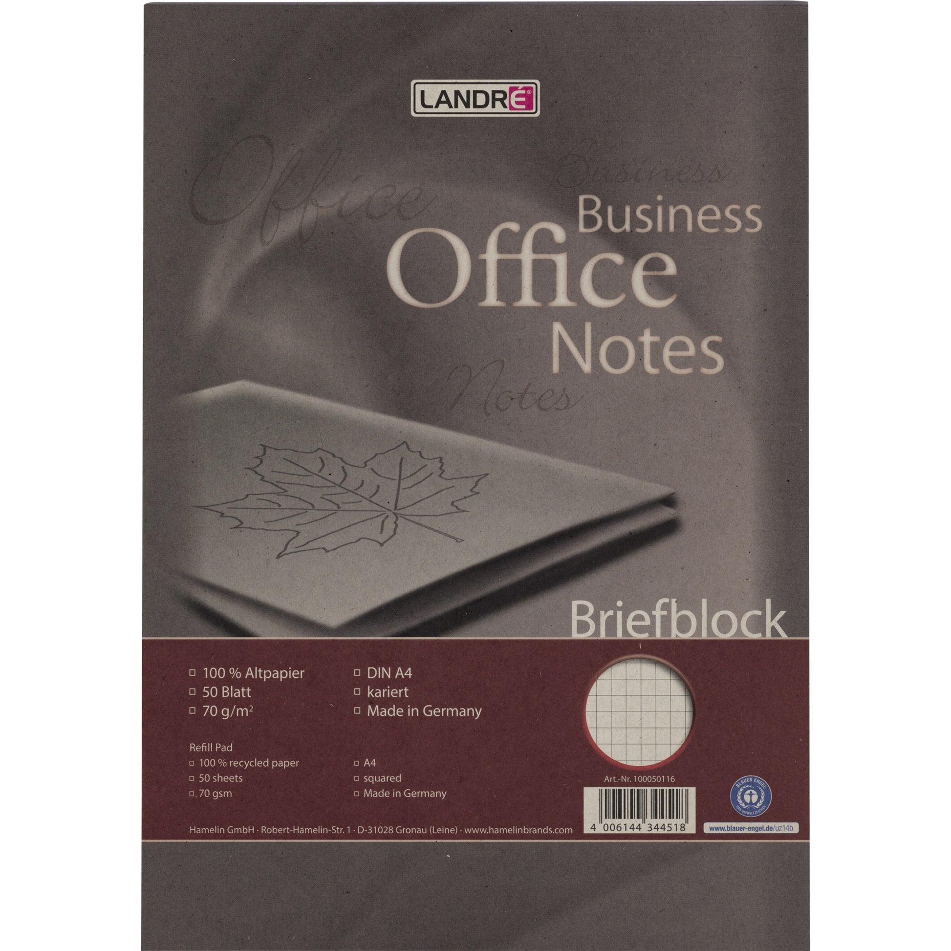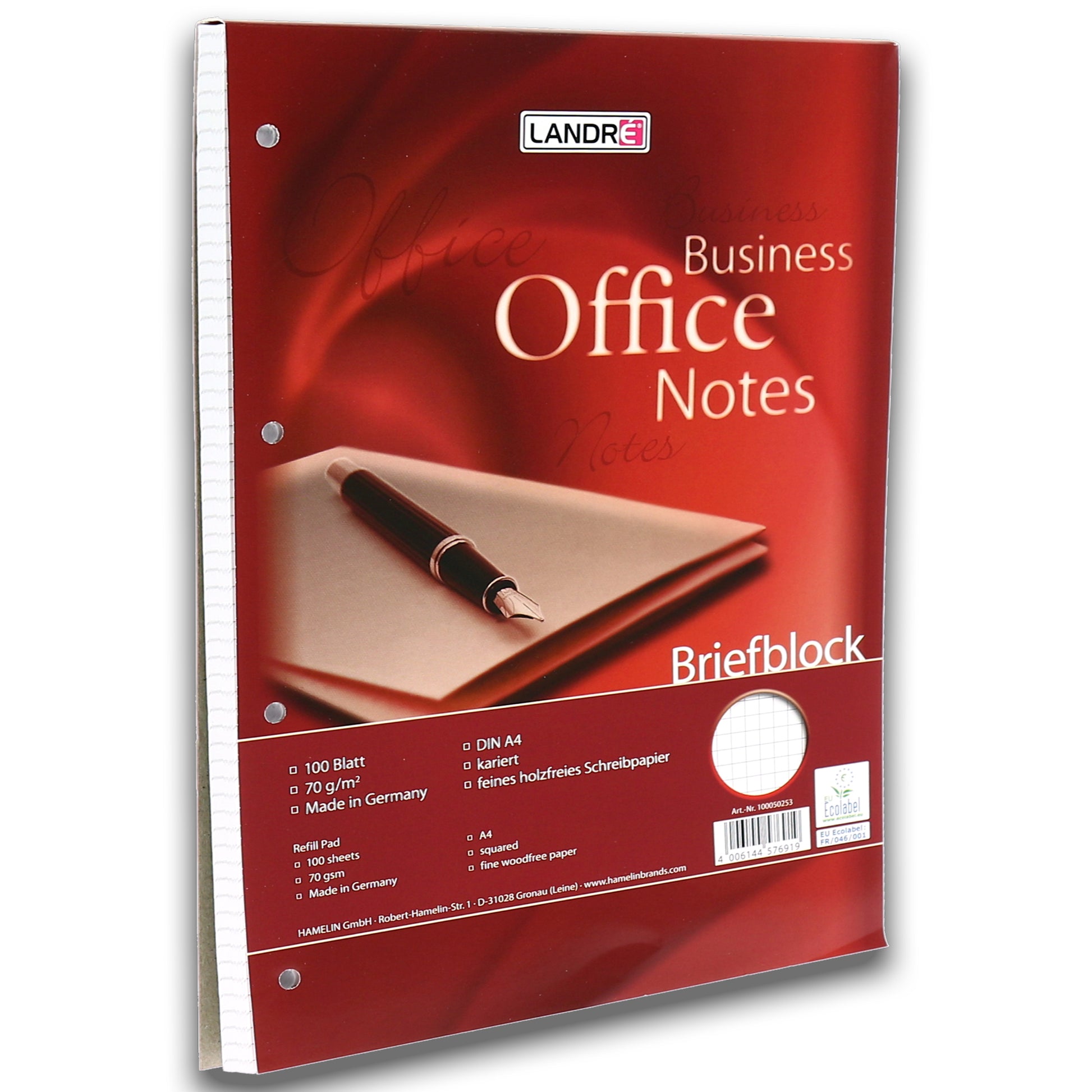 Landré Briefblock Business Office Notes DIN A4 kariert 70g/m² weiß 100 Bl.