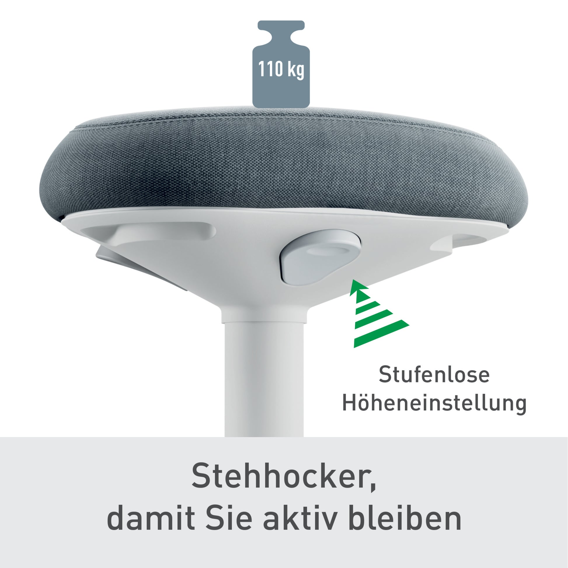 Entdecken Sie den Leitz Sitz-Steh-Hocker Ergo Active - die ideale Lösung für modernes, ergonomisches Sitzen. Dieser Hocker vereint Funktionalität und Design und ist perfekt für alle, die Wert auf eine gesunde Körperhaltung legen. Der Ergo Active Hocker fördert aktives Sitzen und unterstützt eine dynamische Arbeitsweise, indem er Ihnen ermöglicht, zwischen Sitzen und Stehen zu wechseln. Dies trägt nicht nur zu einer besseren Durchblutung bei, sondern hilft auch, Verspannungen und Rückenschmerzen vorzubeugen. Die 9 cm dicke Sitzfläche kann als Stehhilfe zum Anlehnen oder zum vollständigen Sitzen verwendet werden, um Sie zu einer aufrechteren Sitzhaltung zu ermutigen und ein äußerst bequemes Sitzerlebnis ähnlich wie bei einem Sitzkissen zu bieten. Bürohocker mit einzigartigem Komfortsitz in Dreiecksform aus Dual-Density-Foam (DDF) mit festem, ergonomischem Stützkern zur gleichmäßigen Verteilung des Gewichts auf das Becken, umgeben von weicher Schaumstoffpolsterung zur Reduzierung des Drucks auf die Oberschenkel und Beine, ähnlich wie bei einem Sattelhocker. Der abgerundete Sockel fördert Schaukel-, Wipp- und Drehbewegungen zur Stärkung von Rücken und Rumpf bei der Arbeit am Schreibtisch. Leichtgängige pneumatische Höhenverstellung durch Drücken des Knopfes unterhalb des Sitzes, um die perfekte Höhe einzustellen. Abgerundete Standfläche mit rutschfester Gummiunterlage, um den Hocker vor dem Verrutschen zu bewahren und Ihren Boden zu schützen. Dank seines modernen und zeitlosen Designs fügt sich der Hocker harmonisch in jede Einrichtung ein und setzt gleichzeitig stilvolle Akzente. Er ist leicht und mobil, sodass Sie ihn problemlos an verschiedenen Orten einsetzen können. Darüber hinaus ist der Hocker pflegeleicht und lässt sich einfach reinigen, was ihn besonders praktisch für den täglichen Gebrauch macht. Investieren Sie in Ihre Gesundheit und Ihr Wohlbefinden mit dem Leitz Sitz-Steh-Hocker Ergo Active. Genießen Sie die Vorteile eines aktiven Arbeitsstils und gestalten Sie Ihre Umgebung komfortabler und ansprechender. Bestellen Sie jetzt und bringen Sie frischen Wind in Ihre Arbeitsweise! Leitz startet im Aktionszeitraum vom 01. Oktober bis 31. März 2026 eine Cashback-Kampagne auf ausgewählte, gesundheitsfördernde Ergonomie-Produkte. Gehen Sie auf https://www.leitz.com/de-de/promotions/cashback, um Ihren Beleg einzureichen und zu sparen!