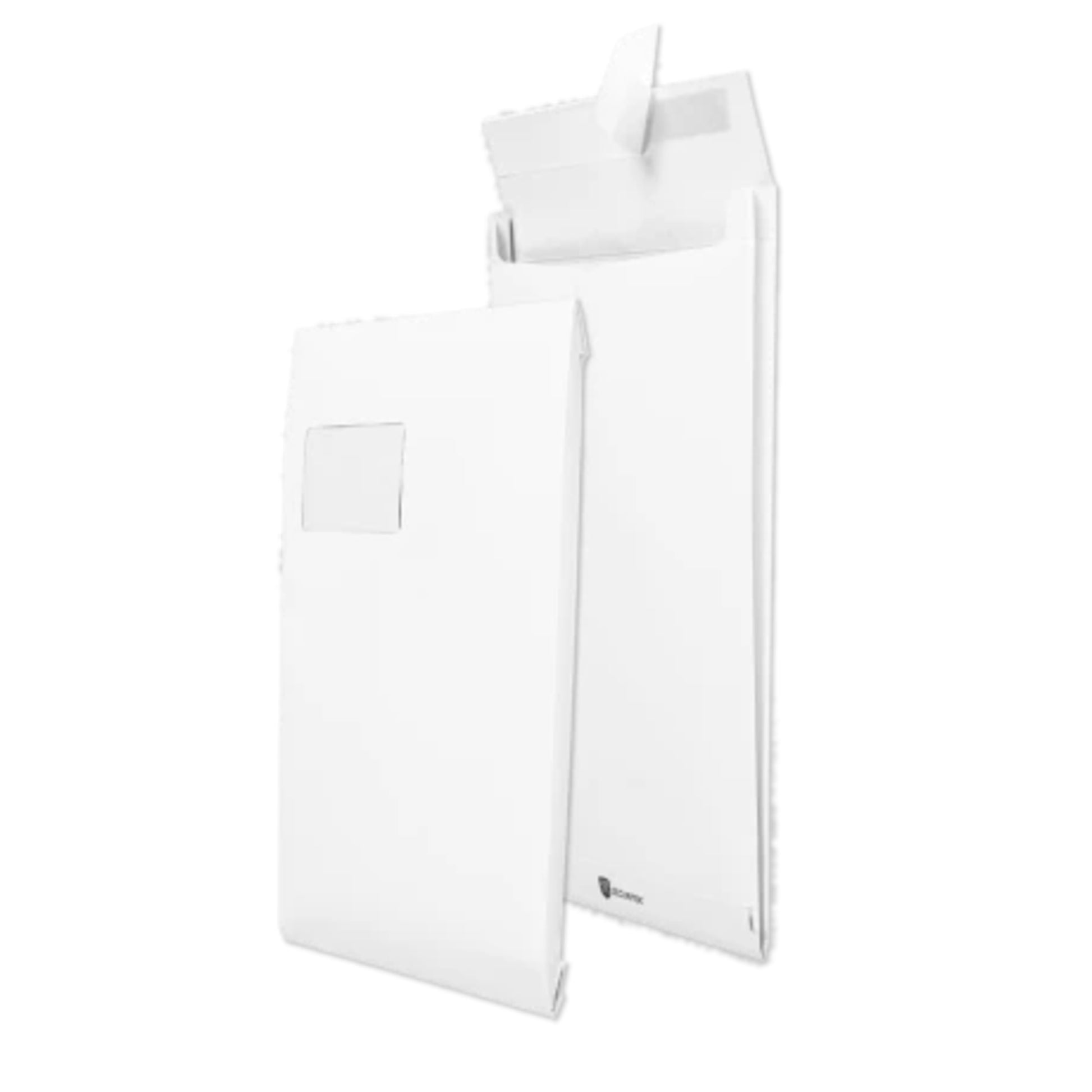 Einfache Handhabung durch Haftklebung - der Abdeckstreifen schützt vor Austrocknung und Schmutz. Durch die Seitenfalten können auch großvolumige Inhalte ideal versendet werden.