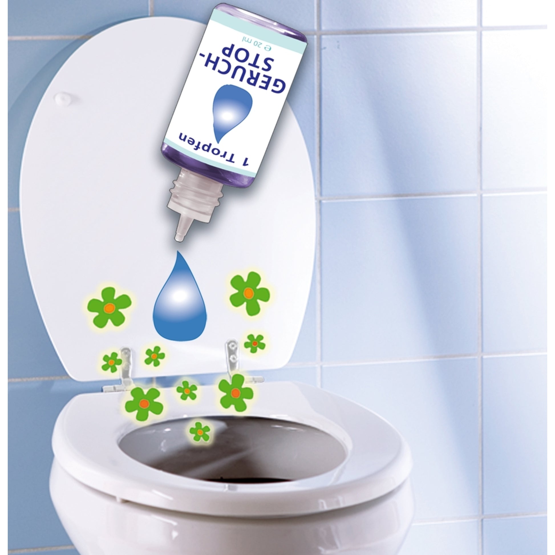 Nur ein Tropfen genügt um unangenehmen Geruch im WC zu verhindern. Einfach vor dem Toilettengang einen Tropfen Geruch-STOP in die Toilette geben und der frische Duft verbreitet sich sofort im Bad und verhindert die Entstehung von unangenehmen Gerüchen. Die handliche Flasche passt in jede Handtasche, so sind Sie auch auf Reisen unterwegs vor peinlichen Situationen geschützt. Der Nächste wird es Ihnen danken! Sie erhalten 20 ml ausreichend für über 400 Anwendungen.