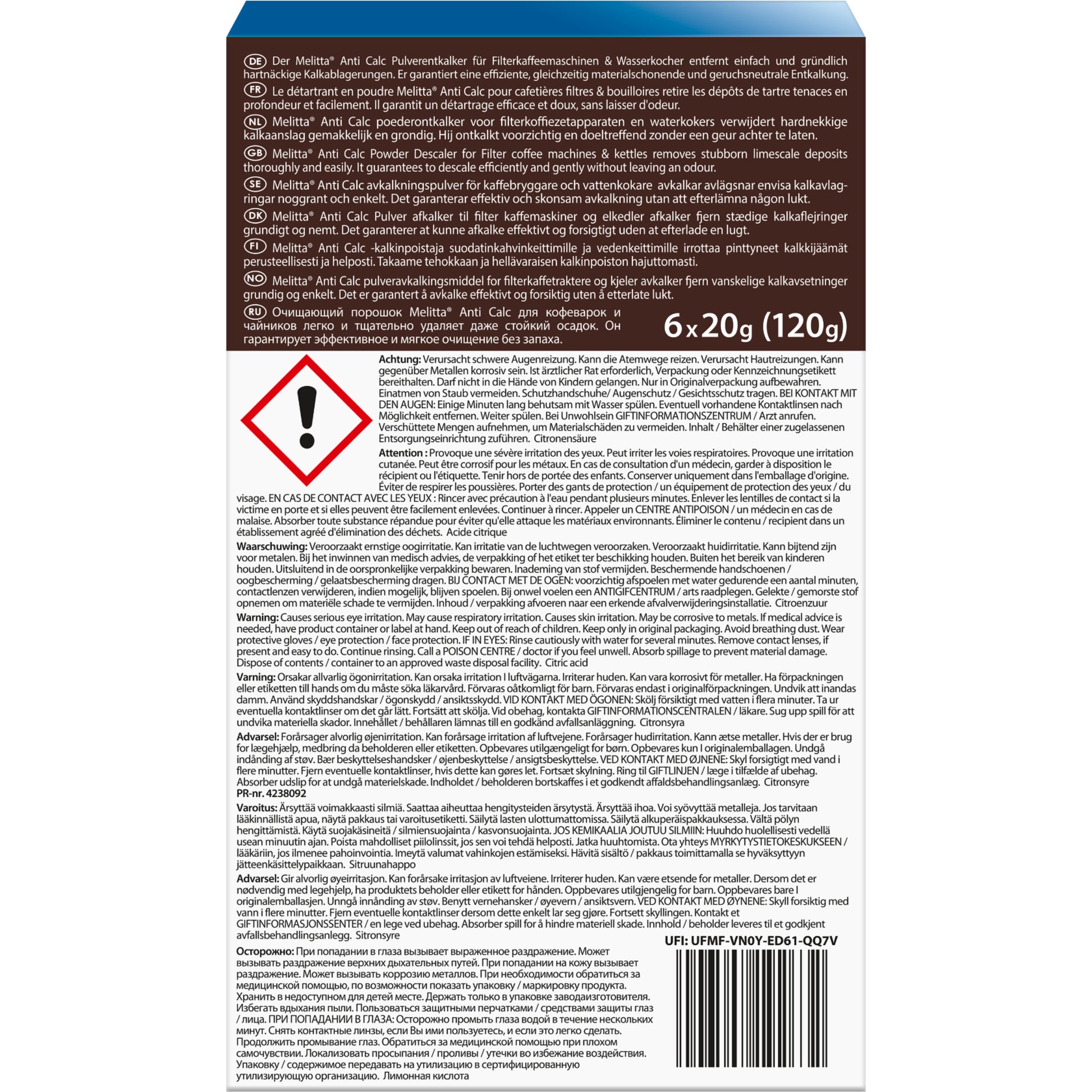 Effiziente Entkalkung für Filterkaffeemaschinen und Wasserkocher aller Marken. Entfernt Kalk gründlich, intensiv und materialschonend. Einfach mit Wasser zu mischen, besonders schnell und leicht anzuwenden. Sorgt für vollen Geschmack bei Filterkaffee und Tee. Geeignet für regelmäßige Anwendung zur Verlängerung der Gerätelebensdauer. Für eine langfristige Funktionsweise der Geräte und maximalen Geschmack.