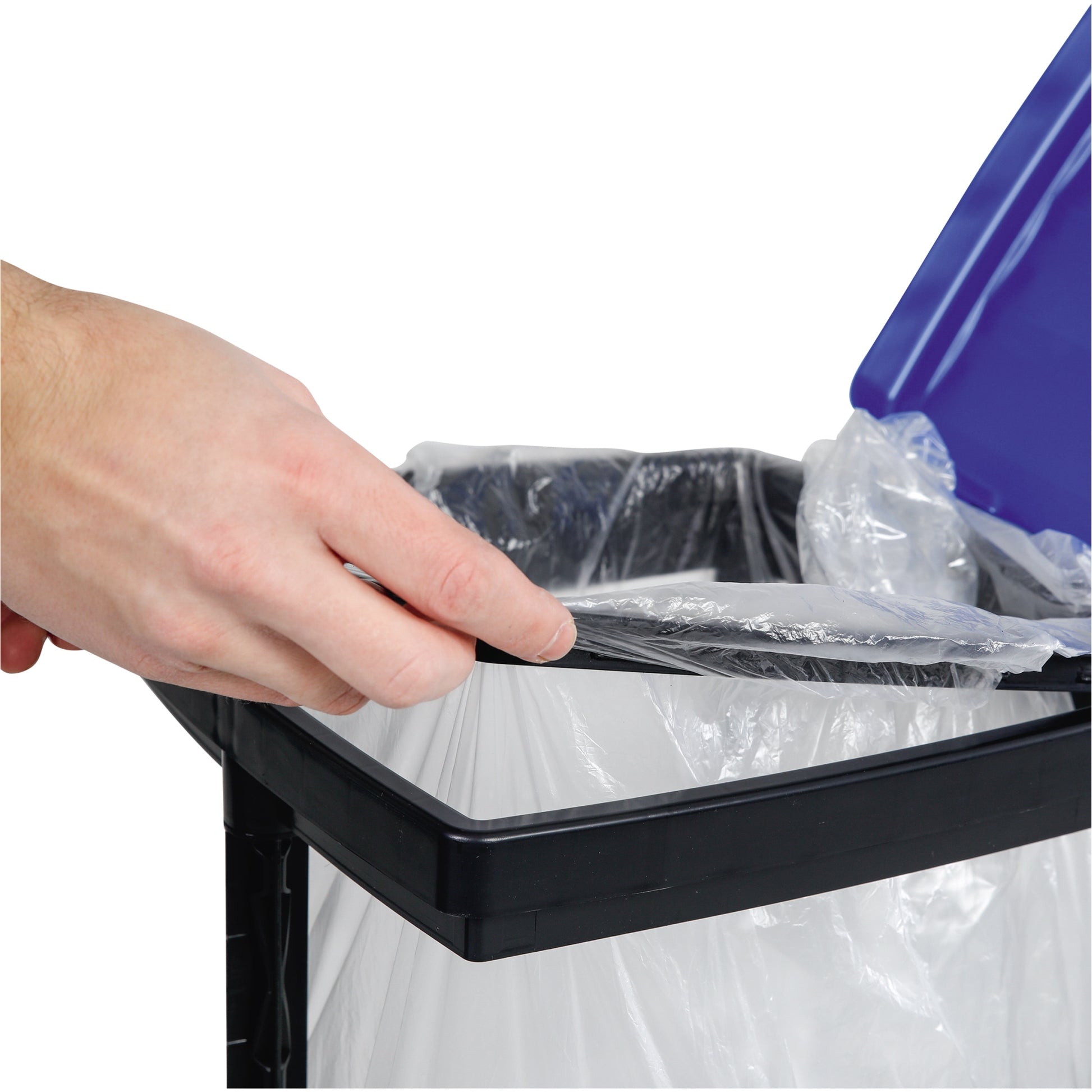 Standfester Müllsackständer mit x-förmigen Beinen und farbigem Deckel – zum Platzieren in Küche, Keller, Werkraum oder Garage – perfekt für große Haushalte, Feiern etc.