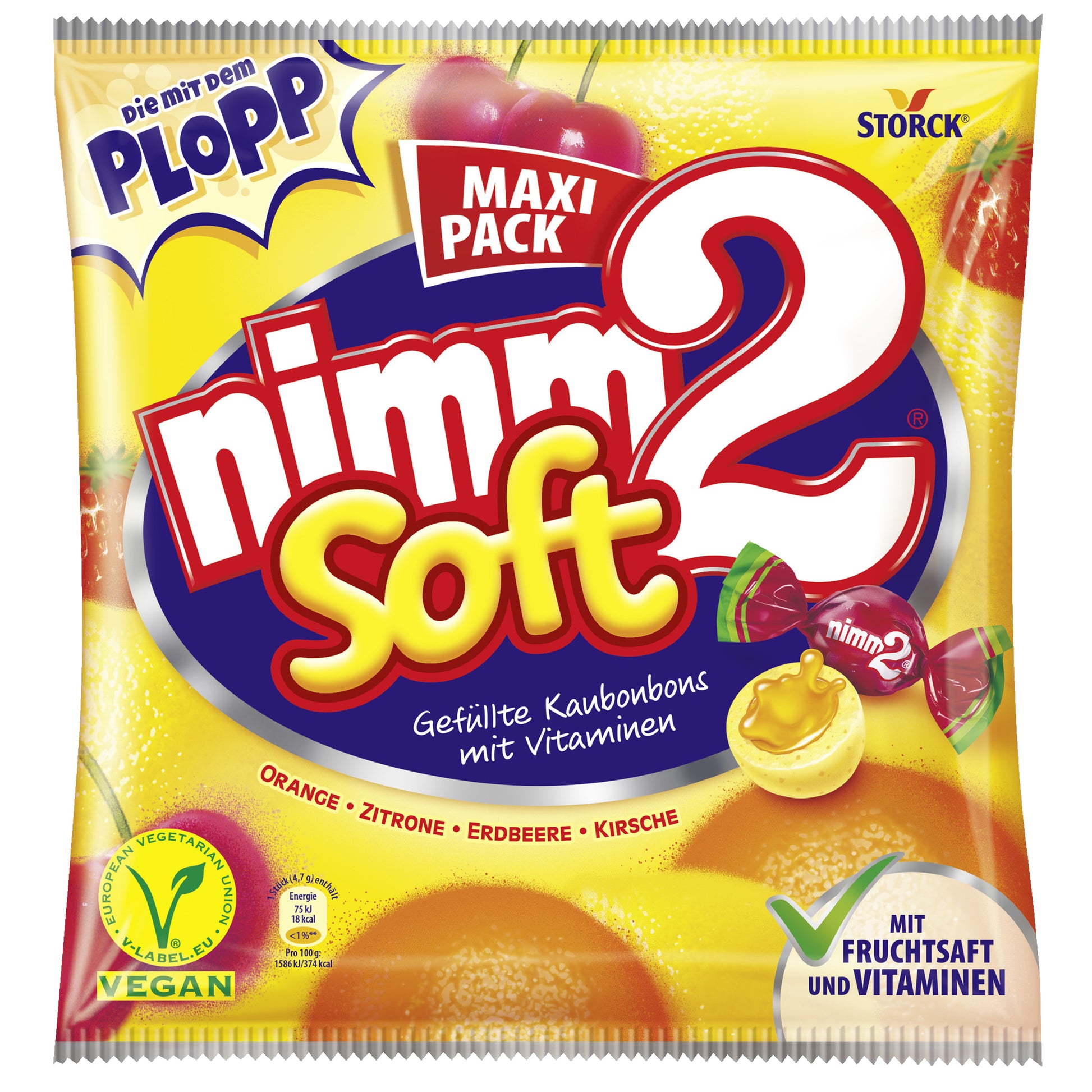 nimm2 soft– die mit dem Plopp. Die Kaubonbons mit dem Plopp sind einfach der Knaller! nimm2 soft sind super leckere Kaubonbons mit Fruchtsaft und Vitaminen. Gefüllte Kaubonbons mit Vitaminen- das sind die Fruchtkaubonbons mit dem guten von nimm2. Gefüllte Fruchtkaubonbons mit Vitaminen.