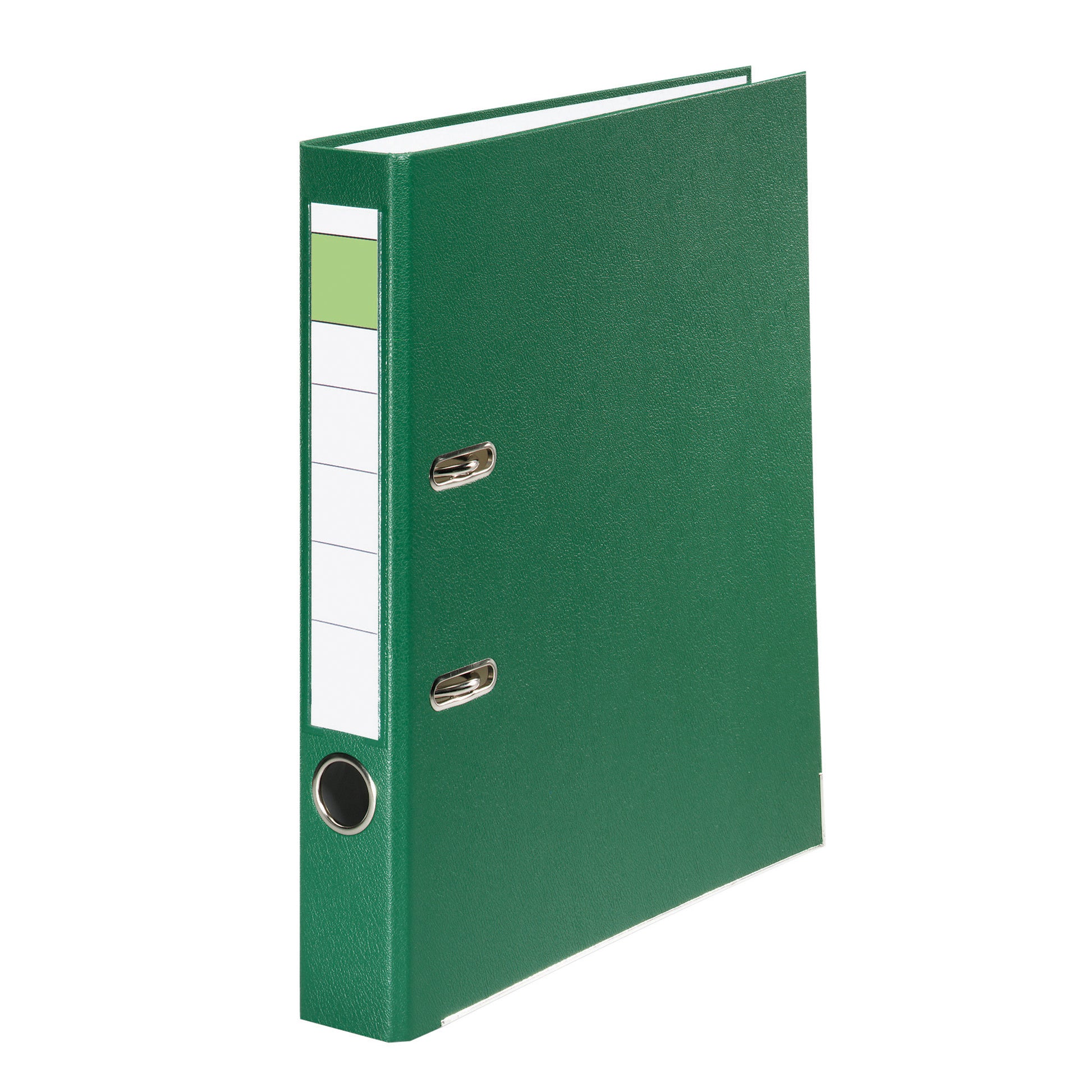 Ordner 50mm DIN A4 Rückenschild: einsteckbar mit Schlitzen Werkstoff: Pappe Material außen: Polypropylen Material innen: Papier Farbe: grün