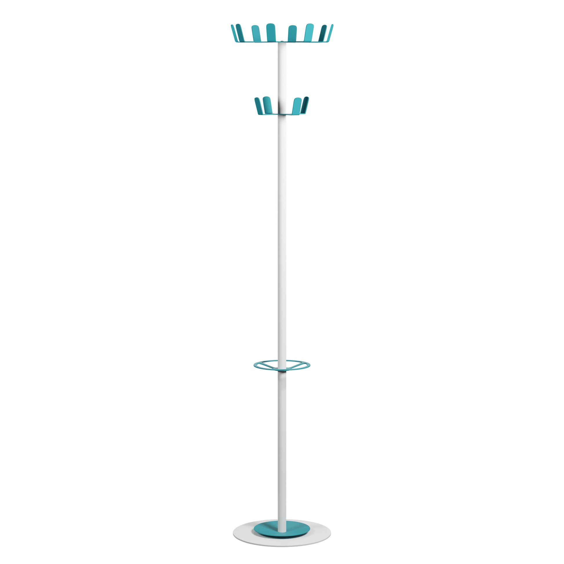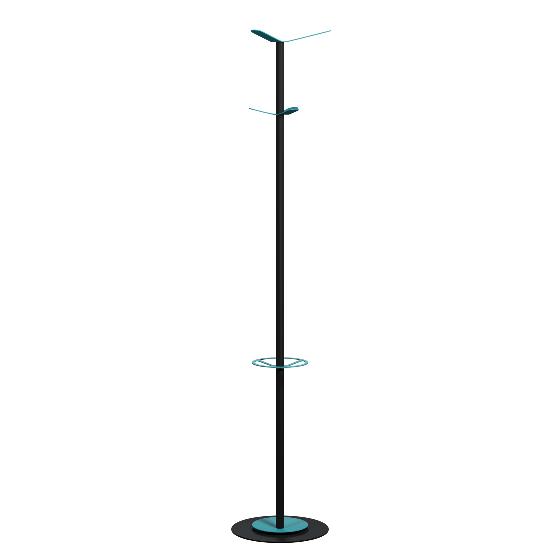 Die Haken bieten viele Aufhängemöglichkeiten und garantieren eine korrekte Handhabung der Kleidung. Die Kapazität des Schirmhalters beträgt 6 Regenschirme. Die Tropfmulde lässt sich sehr leicht reinigen. Der Standfuß aus Stahl garantiert eine einwandfreie Stabilität. Einfacher und schneller Aufbau.
