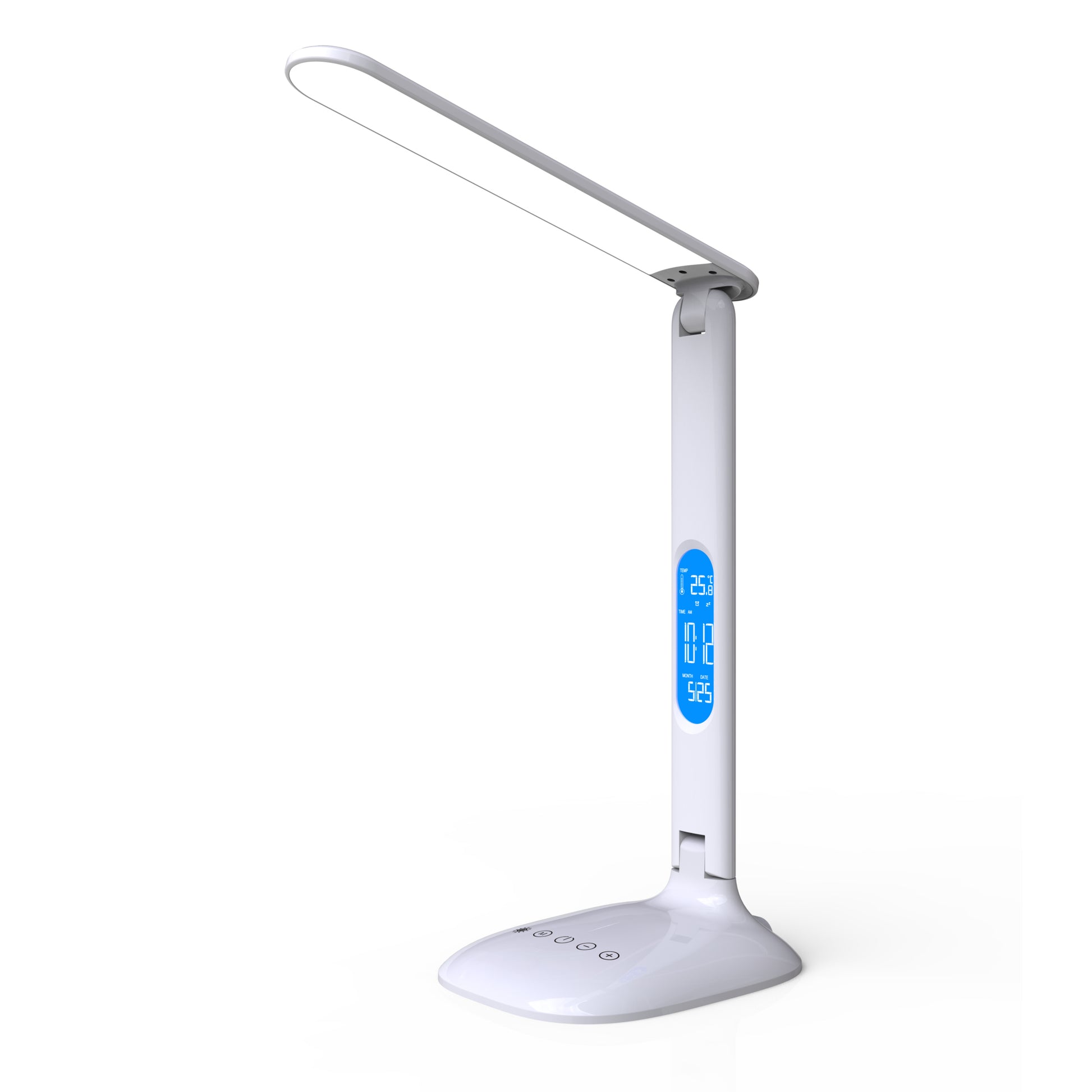 Perfekte Lichtstärke, Sehkomfort pur! Schwenkbarer Leuchtarm und vollständig neigbarer Leuchtkopf. Variierbare Lichtintensität: 5-stufiger Touch-Dimmer am Leuchtfuß. Automatischer Standby-Timer. Blendschutzschild. Digitale Funktionen: Uhrzeit, Datum, Alarm, Temperatur. Dieses Produkt enthält eine Lichtquelle der Energieeffizienzklasse G und diese kann nicht ausgetauscht werden.