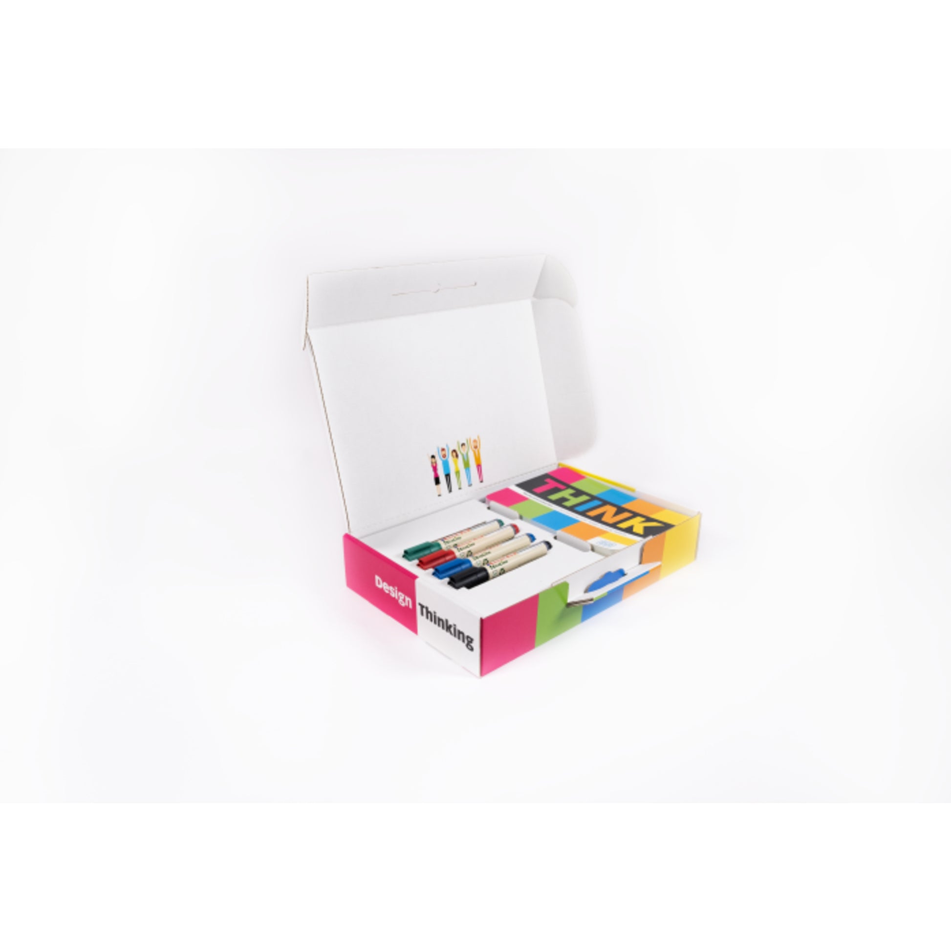 Playroom Starterset THINK FLIP 1 x Satz THINK-Workshopkarten (35 gedruckte Karten), 4 x EcoLine edding Marker (rot, blau, grün, schwarz), 4 x Haftnotizenpackungen