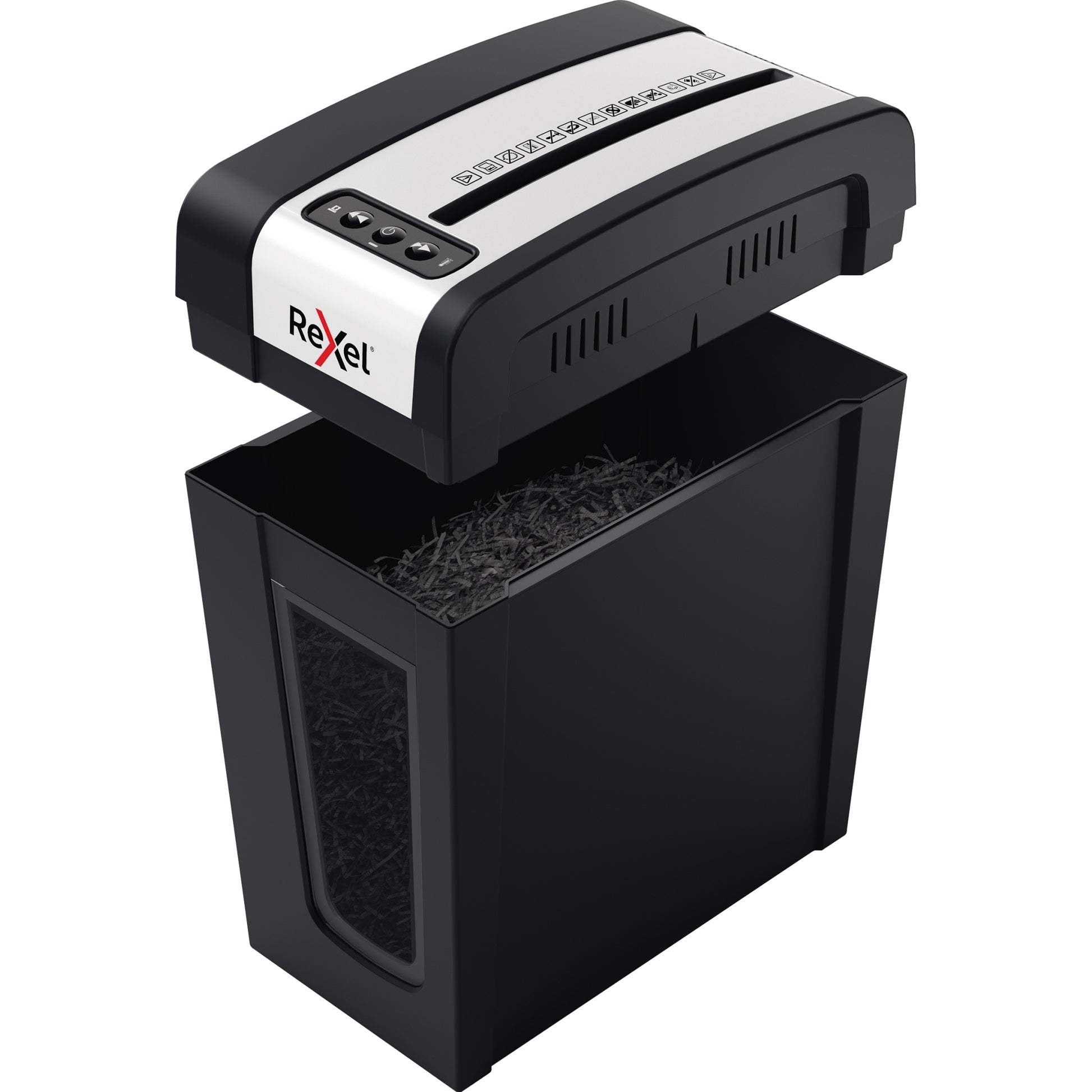 Elektrischer Aktenvernichter für Geschäftsleitung oder Home Office mit 1-2 Benutzern. Manuelle Papierzuführung. Manuelle und Auto-Reverse Funktion. LED-Warnleuchte für Überhitzungsschutz.