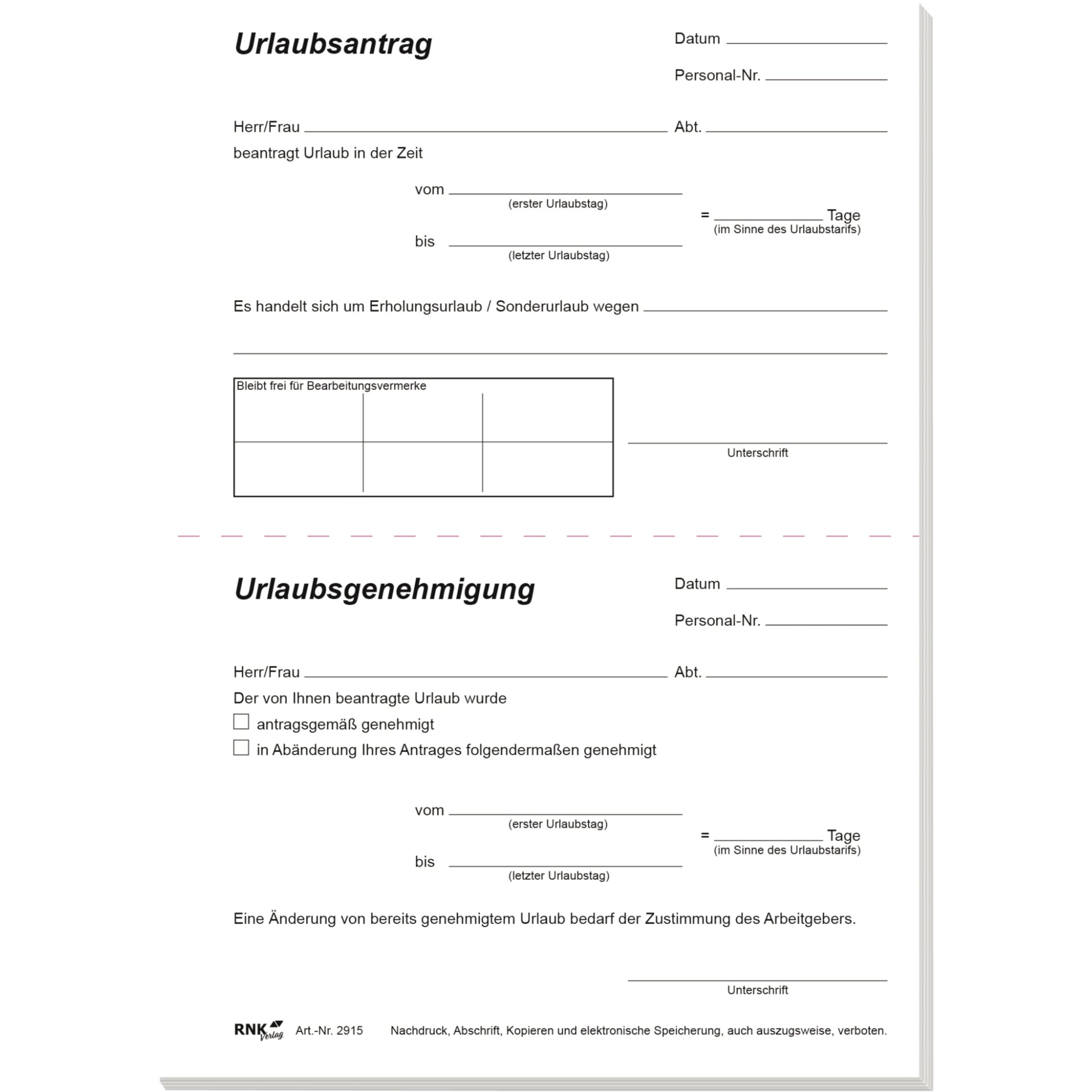 RNK Urlaubsantrag DIN A5 50Blatt