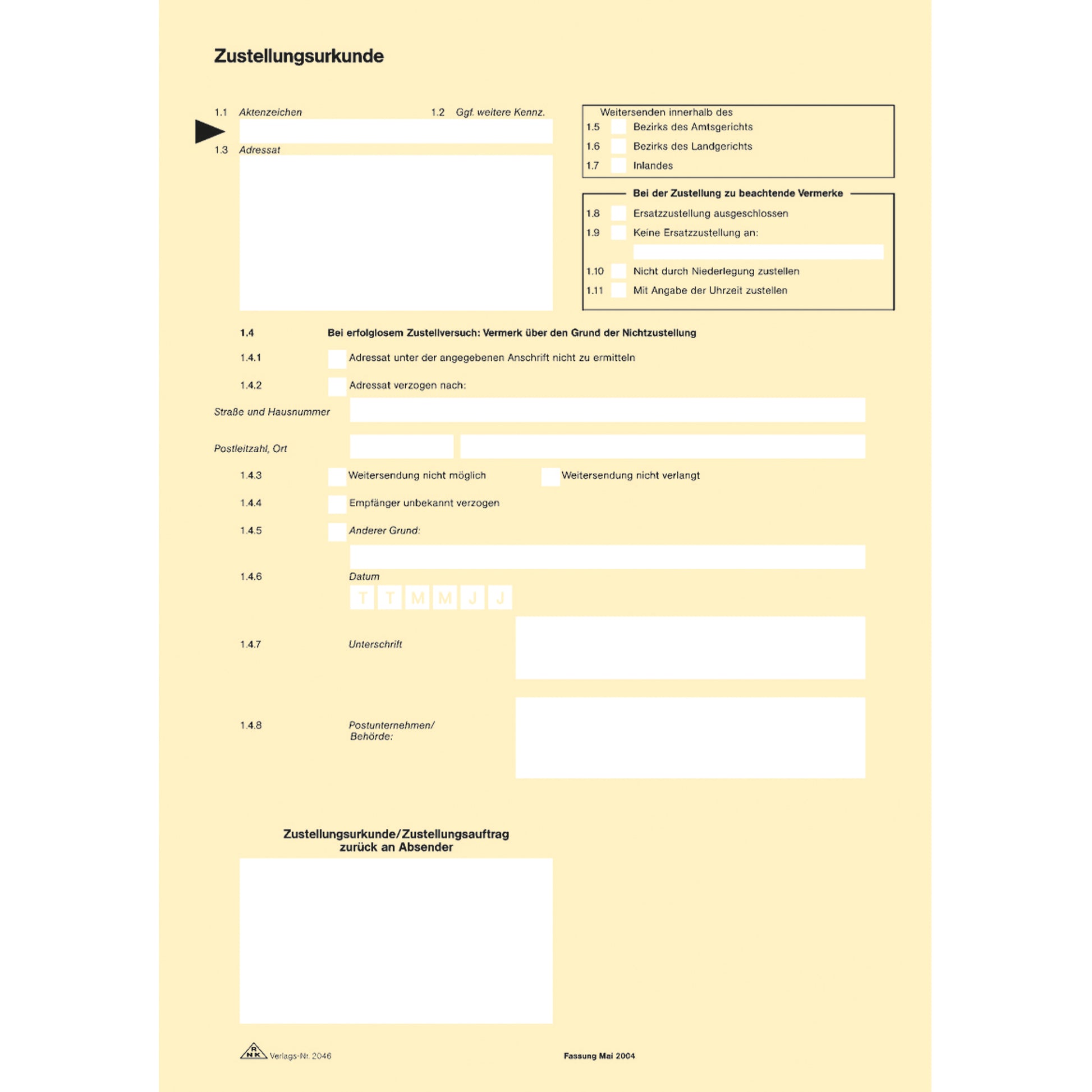 RNK Zustellungsurkunde DIN A4 2Seiten 80g