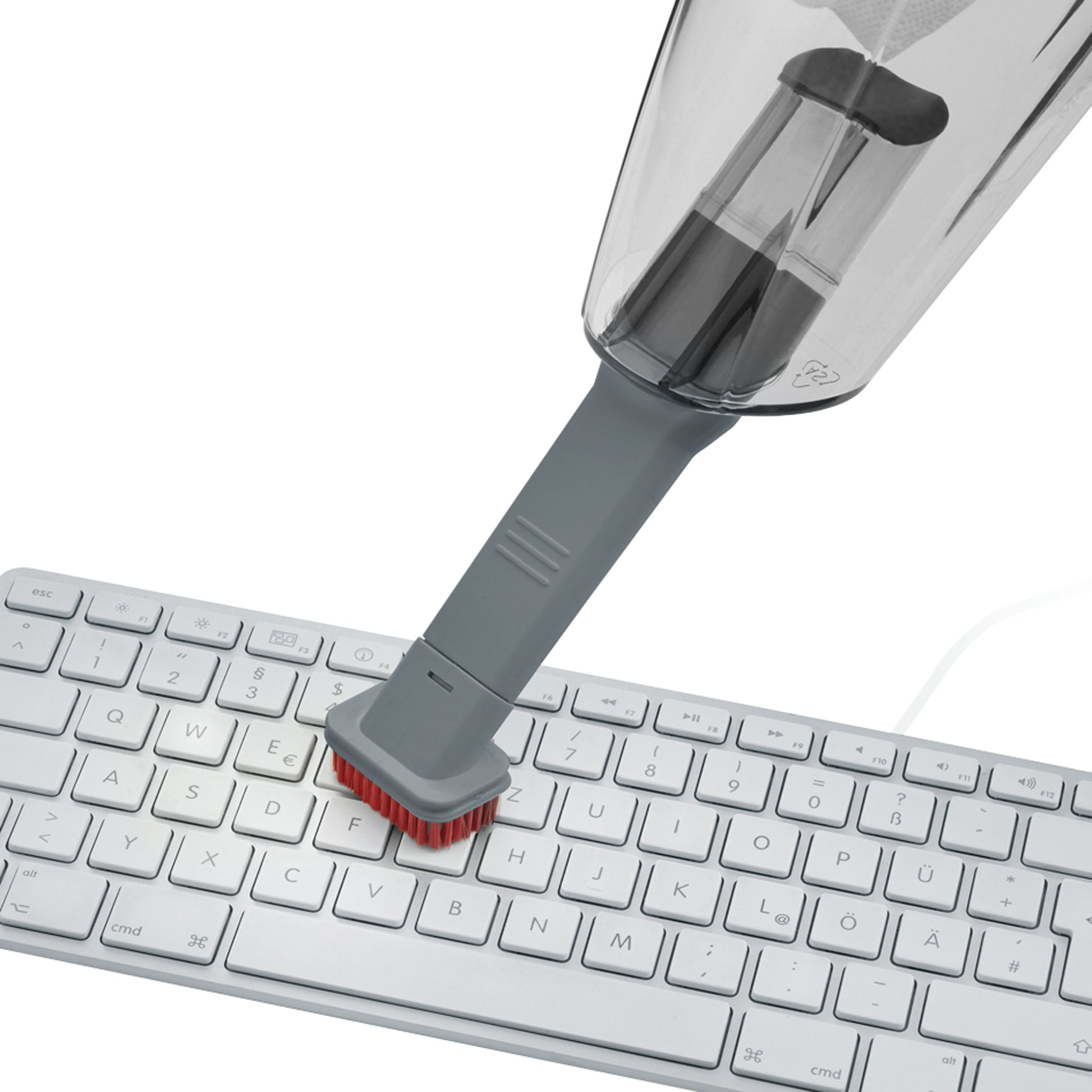 3-in-1 Handstaubsauger. Kabellos. Saugt Staub und Flüssigkeiten. Leicht, schnell und flexibel einsetzbar. Gummidüse zum Saugen von Flüssigkeiten. Fugendüse mit zusätzlichem Bürstenaufsatz zur Reinigung schwer erreichbarer Stellen. Einfache Behälterentleerung. Keine zusätzlichen Kosten für Beutel oder Filter. Leicht zu reinigender Permanent-Filter. Überlade- und Tiefentladeschutz. Ladekontrollleuchte.