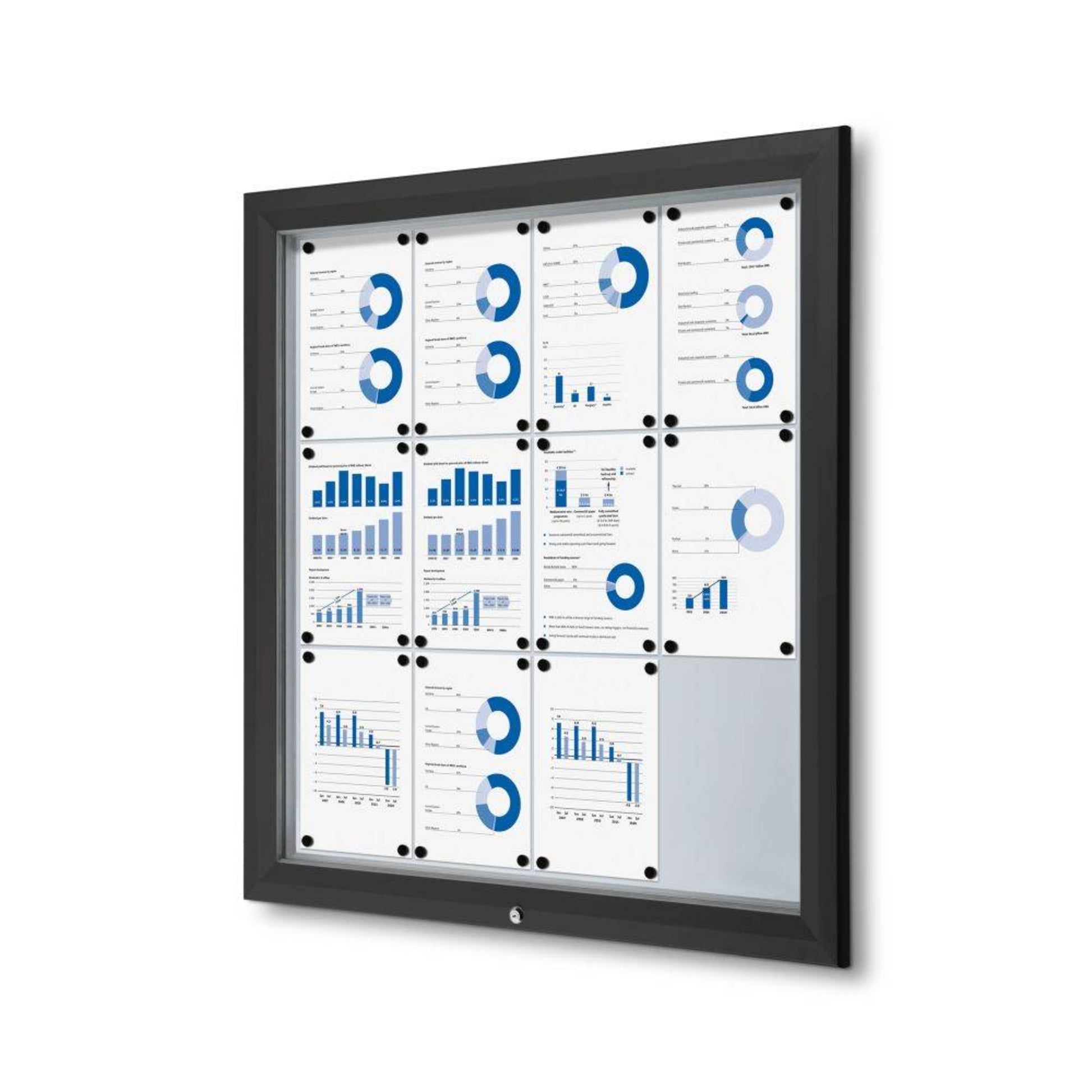 Präsentieren Sie Ihre Nachrichten oder Notizen sicher mit unserem abschließbaren Schaukasten mit beschreibbarer Metallrückwand. Der Schaukasten lässt sich unten öffnen und mit einem Schlüssel sicher verschließen, was einen einfachen Zugang und zusätzliche Sicherheit gewährleistet. Ab einer Größe von 12 x A4 sind Gasdruckfedern enthalten, die die Fronttür halten und für den Komfort des Benutzers sorgen. Notizen oder Nachrichten können mit Hilfe von Magneten leicht in der Vitrine angebracht werden. Der Schaukasten ist B1-zertifiziert, was ihn zu einem sicheren und idealen Schaukasten für den Gebrauch macht.