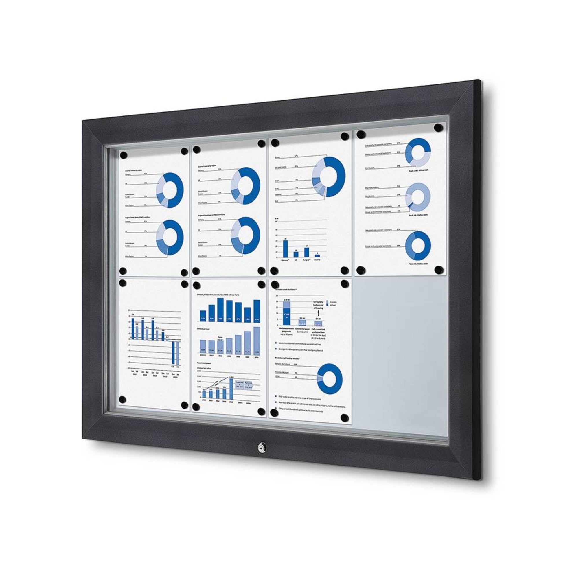 Präsentieren Sie Ihre Nachrichten oder Notizen sicher mit unserem abschließbaren Schaukasten mit beschreibbarer Metallrückwand. Der Schaukasten lässt sich unten öffnen und mit einem Schlüssel sicher verschließen, was einen einfachen Zugang und zusätzliche Sicherheit gewährleistet. Ab einer Größe von 12 x A4 sind Gasdruckfedern enthalten, die die Fronttür halten und für den Komfort des Benutzers sorgen. Notizen oder Nachrichten können mit Hilfe von Magneten leicht in der Vitrine angebracht werden. Der Schaukasten ist B1-zertifiziert, was ihn zu einem sicheren und idealen Schaukasten für den Gebrauch macht.