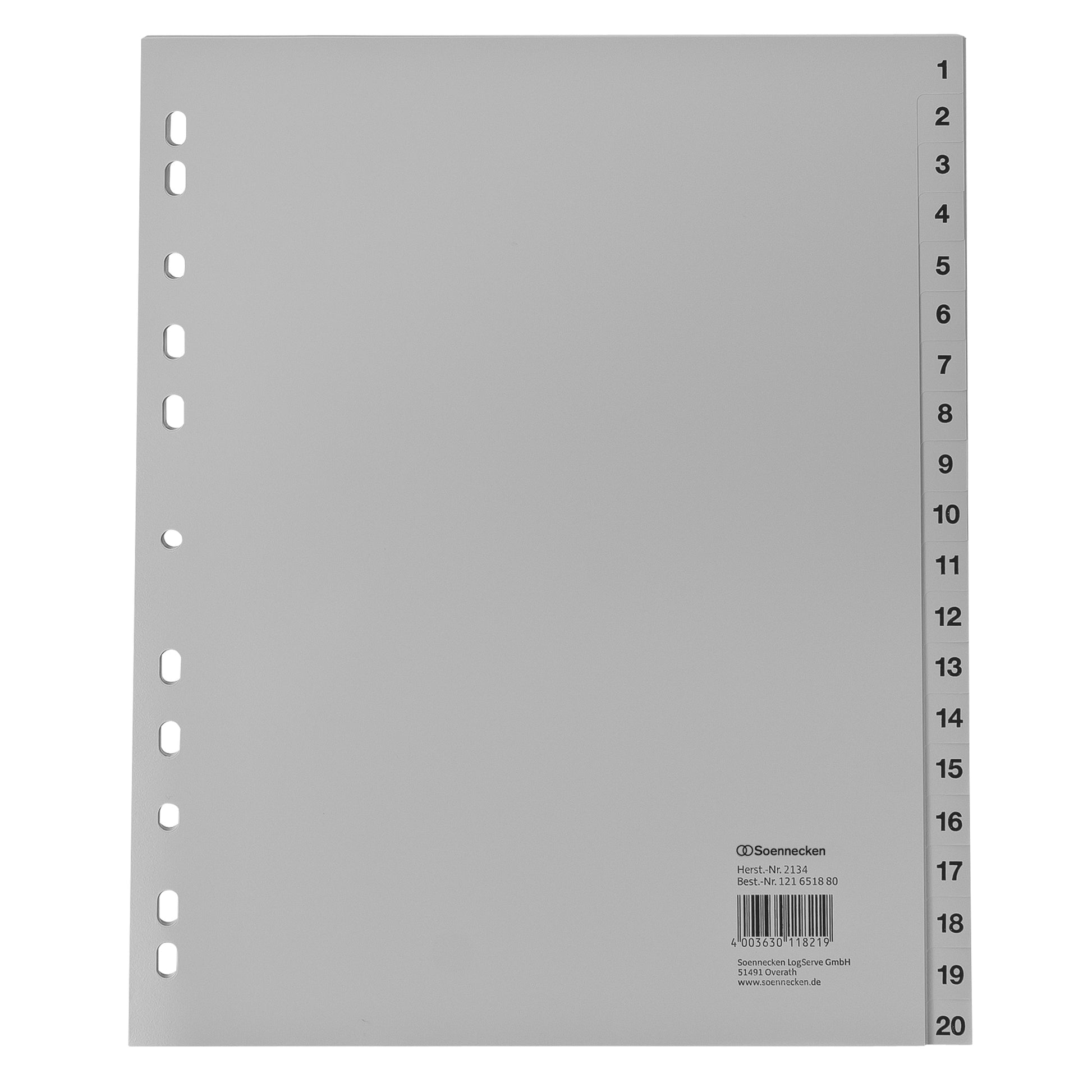 Soennecken Zahlenregister DIN A4, Überbreite 1-10 Polypropylen grau