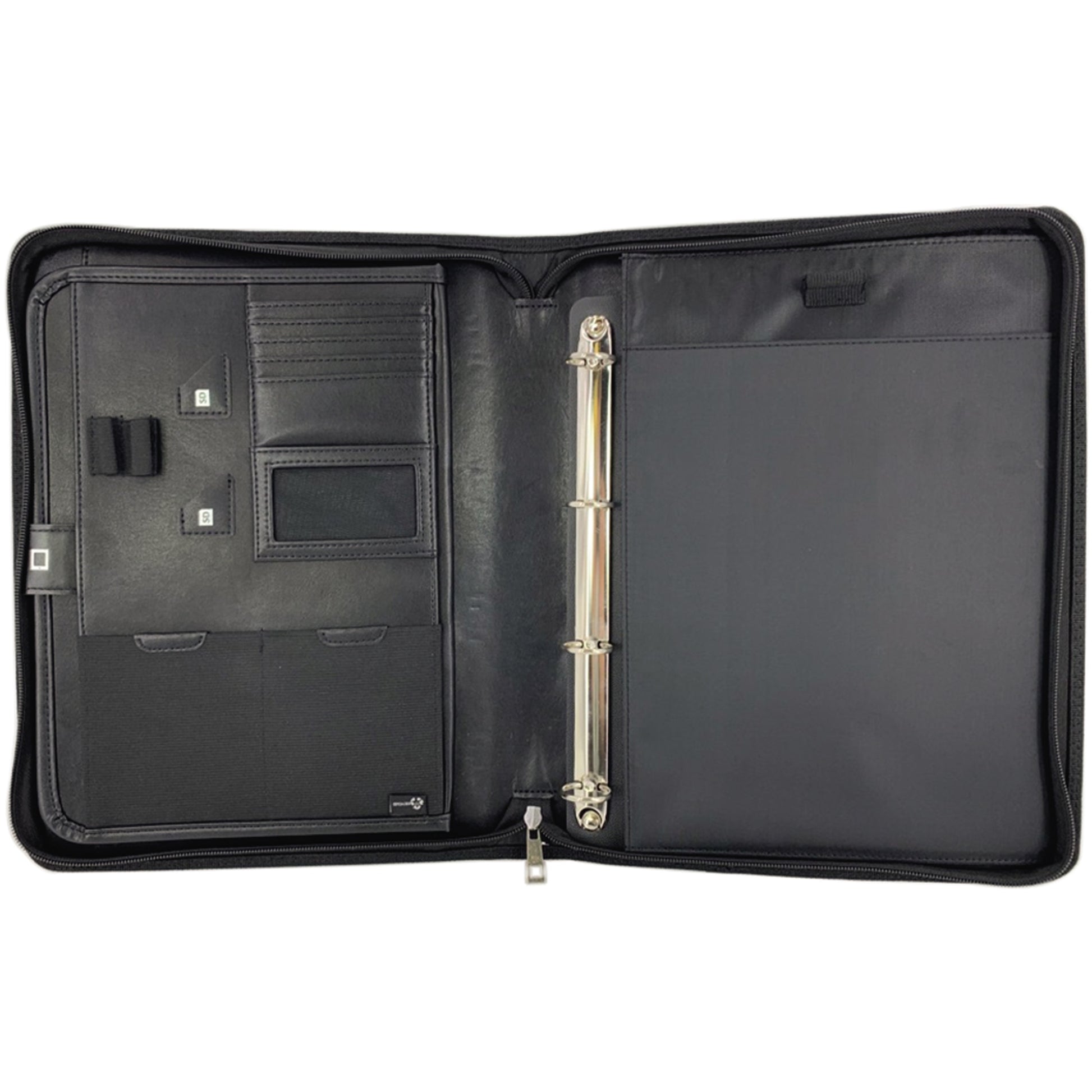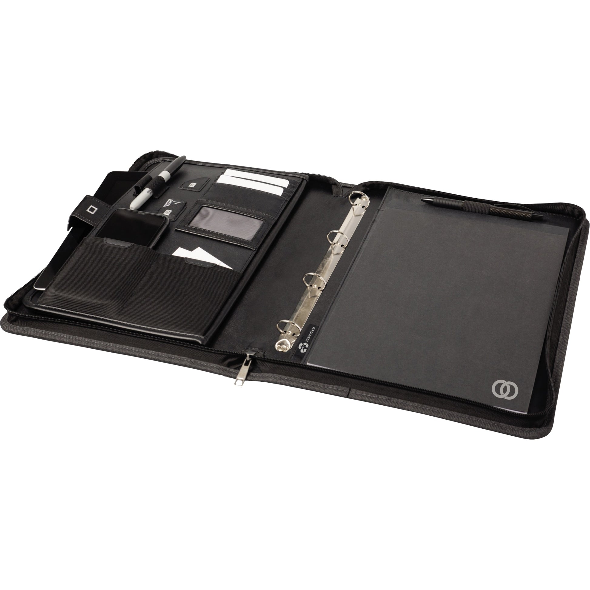 | Ausführung des Inhalts (bzgl. der Hauptausstattungsteile) | Dokumentenfach, gepolstertes Tabletfach, flexible Multifunktionsbänder, sechs Kredit-/ Visitenkartenfächer, zwei flexible Einsteckfächer, zwei SD-Kartenfächer, herausnehmbare Ringmechanik |