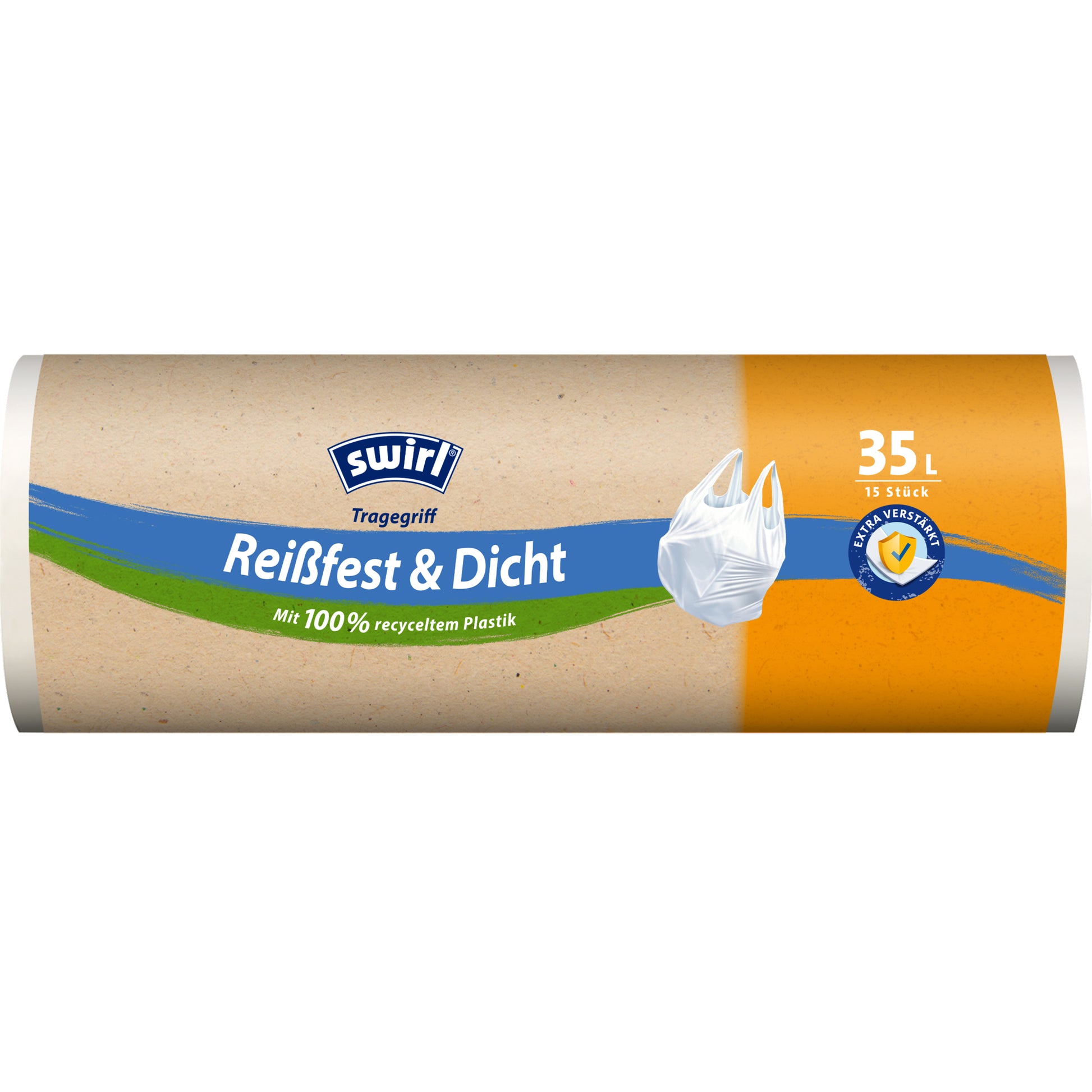 Mit geprägter Mehrschichtfolie sind sie dicht dank verstärkter Schutzstruktur. Die Müllbeutel bieten extra Schutz vor Auslaufen. Zudem sind die Müllbeutel besonders widerstandsfähig, in gewohnt zuverlässiger Swirl®-Qualität.