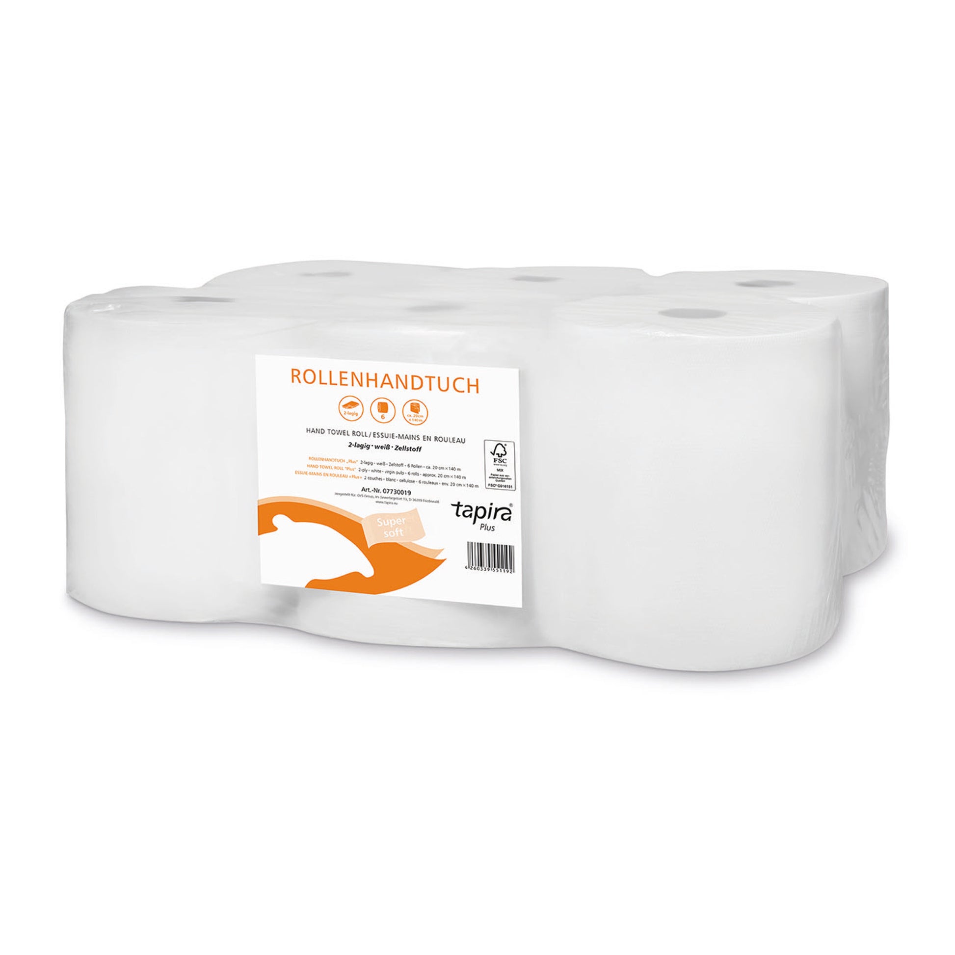 tapira Handtuchrolle PLUS 19,8 cm x 140 m (B x L) Zellstoff weiß 6 Rl./Pack.