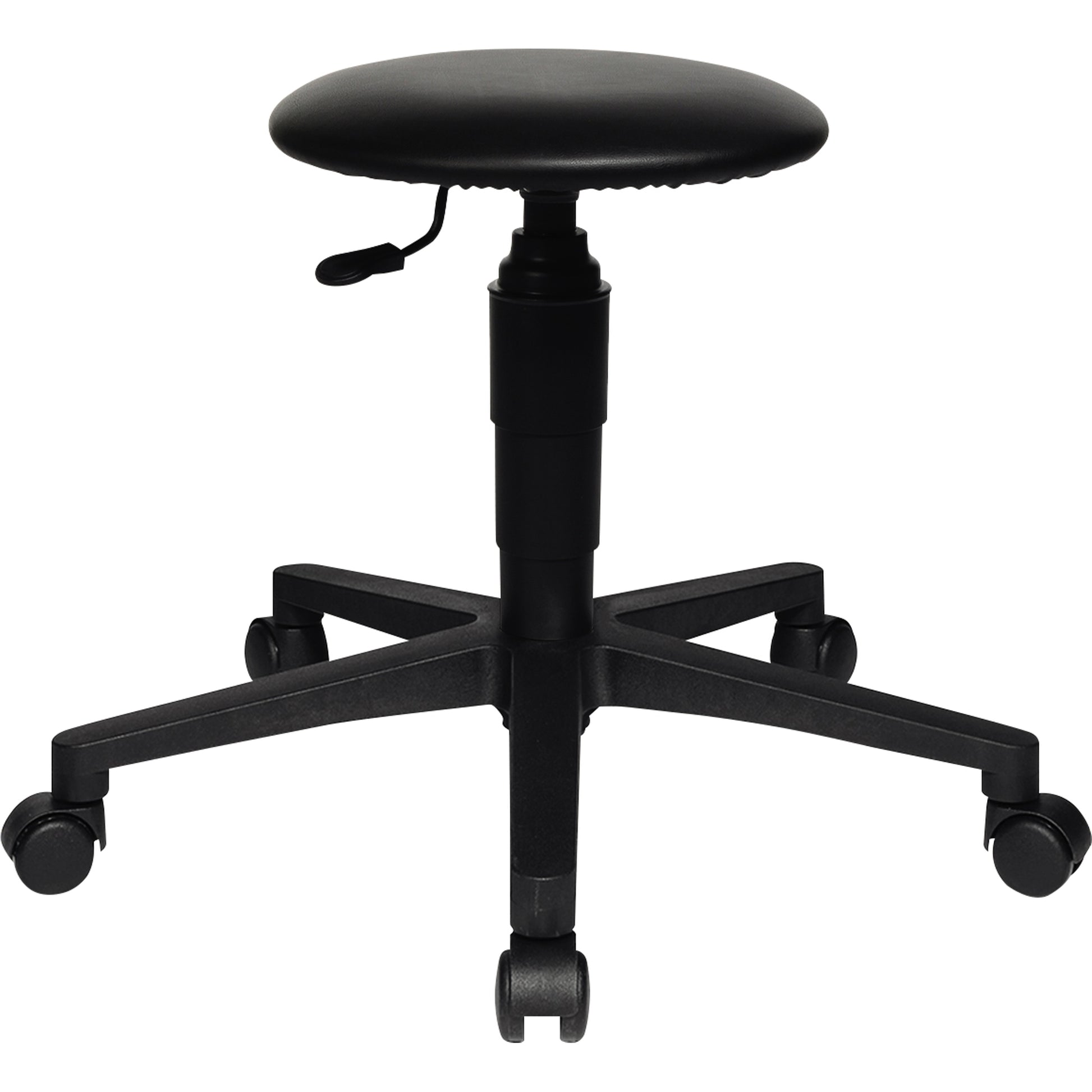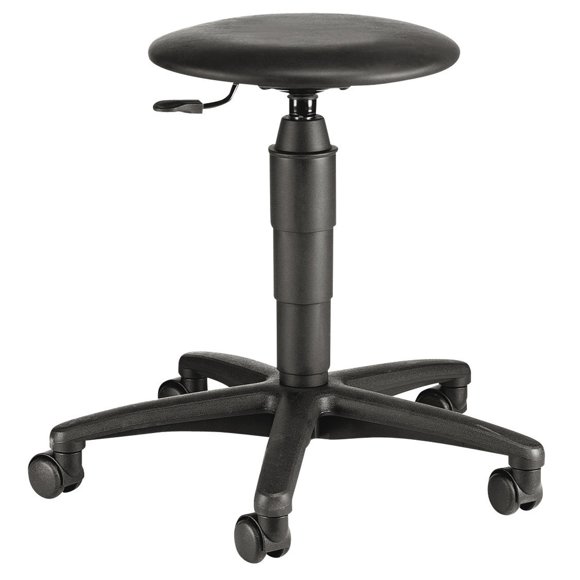 Sitzhocker mit runder Sitzfläche, stufenlos höhenverstellbar. Mit mittelhoher Gasfeder.