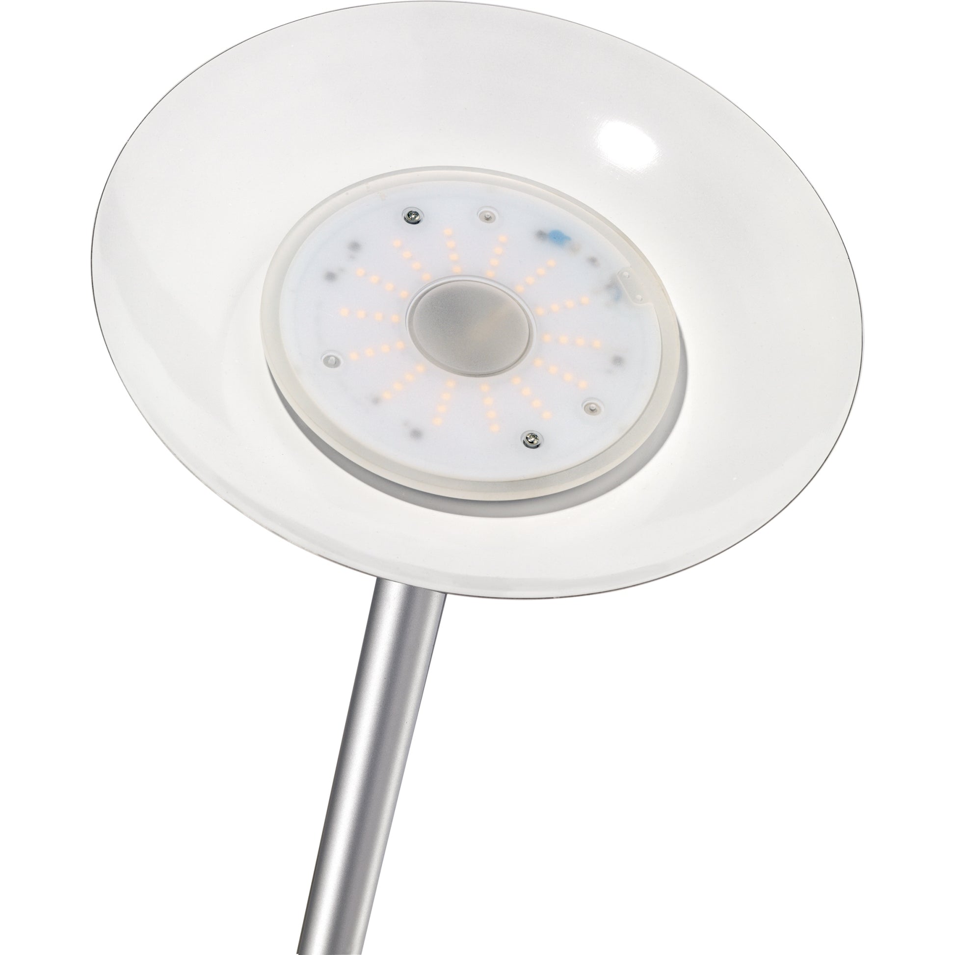 Über einen Drehdimmer am Gestell der VARIALUX Stehleuchte kann die Lichtintensität reguliert werden. Sie ist mit einem langlebigen und energiesparenden LED-Modul ausgerüstet. Die VARIALUX Stehleuchte ist mit und ohne Gelenkarm erhältlich. Durch die zwei Gelenke kann das warme Licht flexibel ausgerichtet werden, als Deckenfluter oder als Stehleuchte. Eine im Inneren emaillierte Lampenschale sorgt für eine optimale Lichtstreuung zur indirekten Beleuchtung. Der beschwerte Sockel garantiert die Standfestigkeit des Deckenfluters. Dieses Produkt enthält eine Lichtquelle der Energieeffizienzklasse E und diese kann nicht ausgetauscht werden.