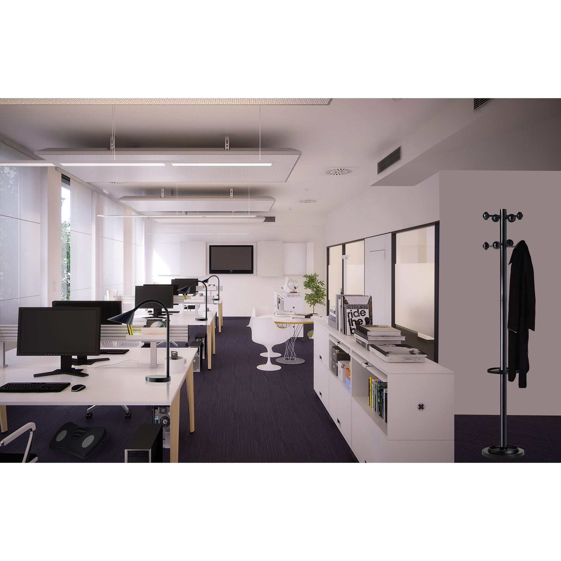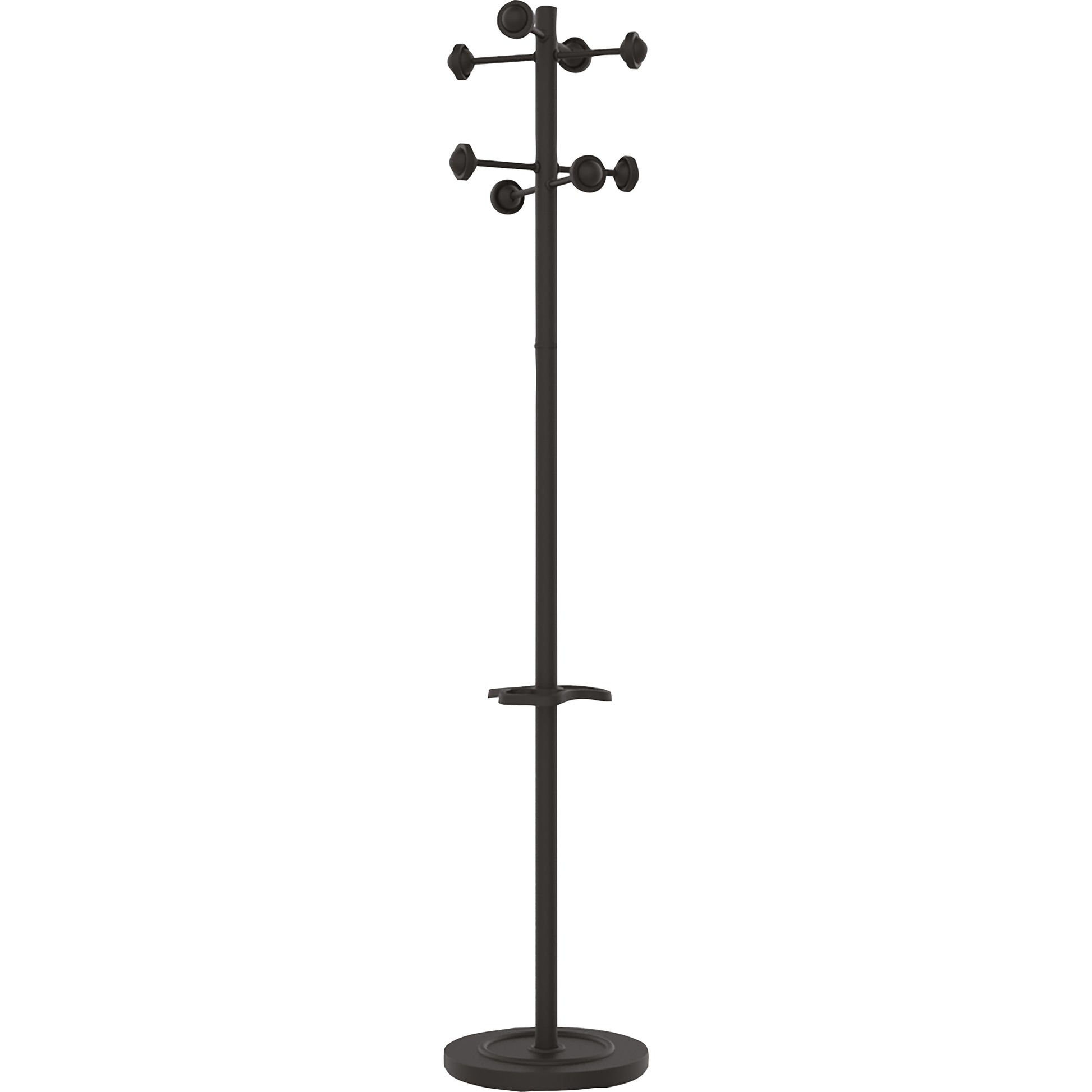 Garderobenständer mit Schirmständer und drehbarem Kopf für Gemeinschaftsräume und Großraumbüros. Der robuste ACCUEIL Kleiderständer verfügt über versetzt angebrachte Kleiderhaken für ein einfaches Aufhängen der Kleidung ohne Knitter. Dank des drehbaren Kopfes kommt man problemlos an seine Kleidung, auch wenn der Garderobenständer in der Ecke des Raumes steht. Die Kleiderhaken sind mit einer Anti-Rutsch-Kante ausgestattet. Für Standfestigkeit sorgt der beschwerte Sockel. Der ACCUEIL Kleiderständer bietet zusätzlich Platz für 9 Schirme und hat darunter eine Abtropfmulde. Die abgerundeten Kleiderhaken werden in einem Stück gegossen, daher haben sie keine Nähte und schonen die Kleidung. ACCUEIL kann in kurzer Zeit ohne Werkzeug aufgebaut werden.